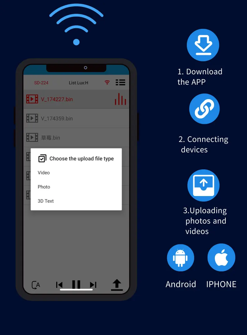 -WIFI transmits content, and can remotely control replacement content and upgrades. (SD Card version can not support wifi function)