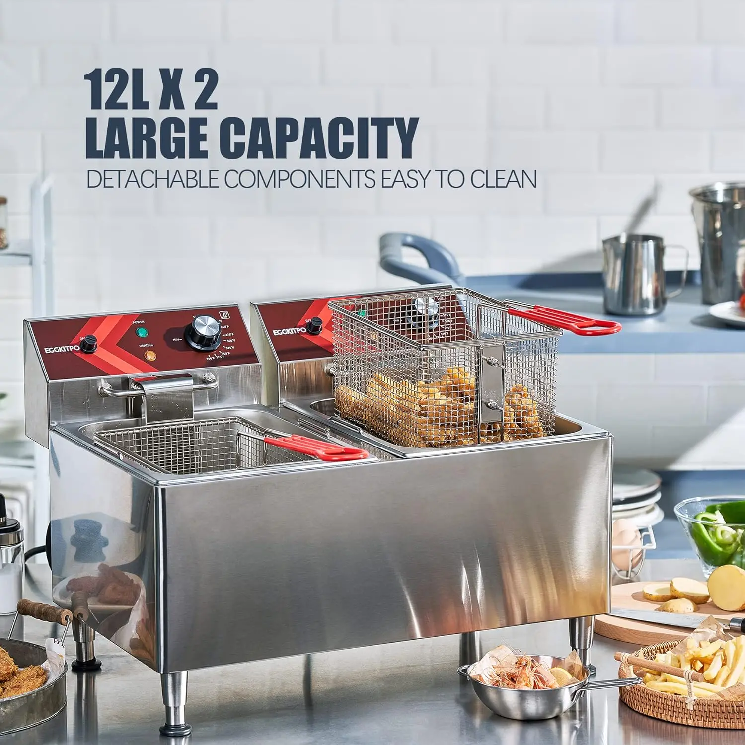 Deep fryers Commercial Deep Fryer 12L x 2 Large Dual Tank Electric Countertop Fryer for Restaurant with 2 Frying Baskets and Lids, 1800W x 2, 120V