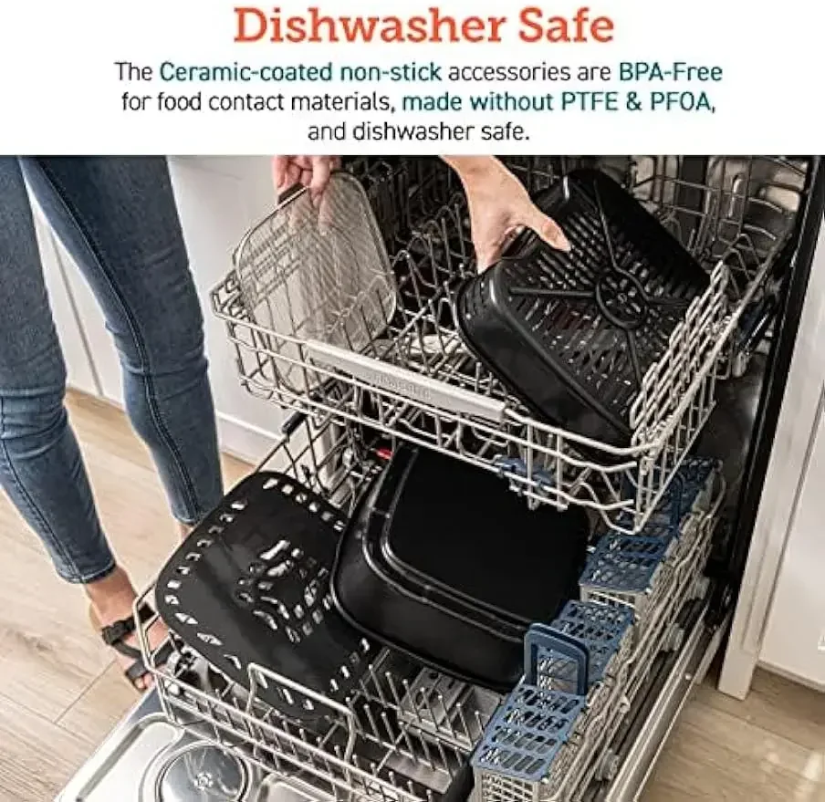 - Easy to Clean: The nonstick ceramic-coated grill grate is made without PTFE, and the basket and cooking pot are dishwasher-safe