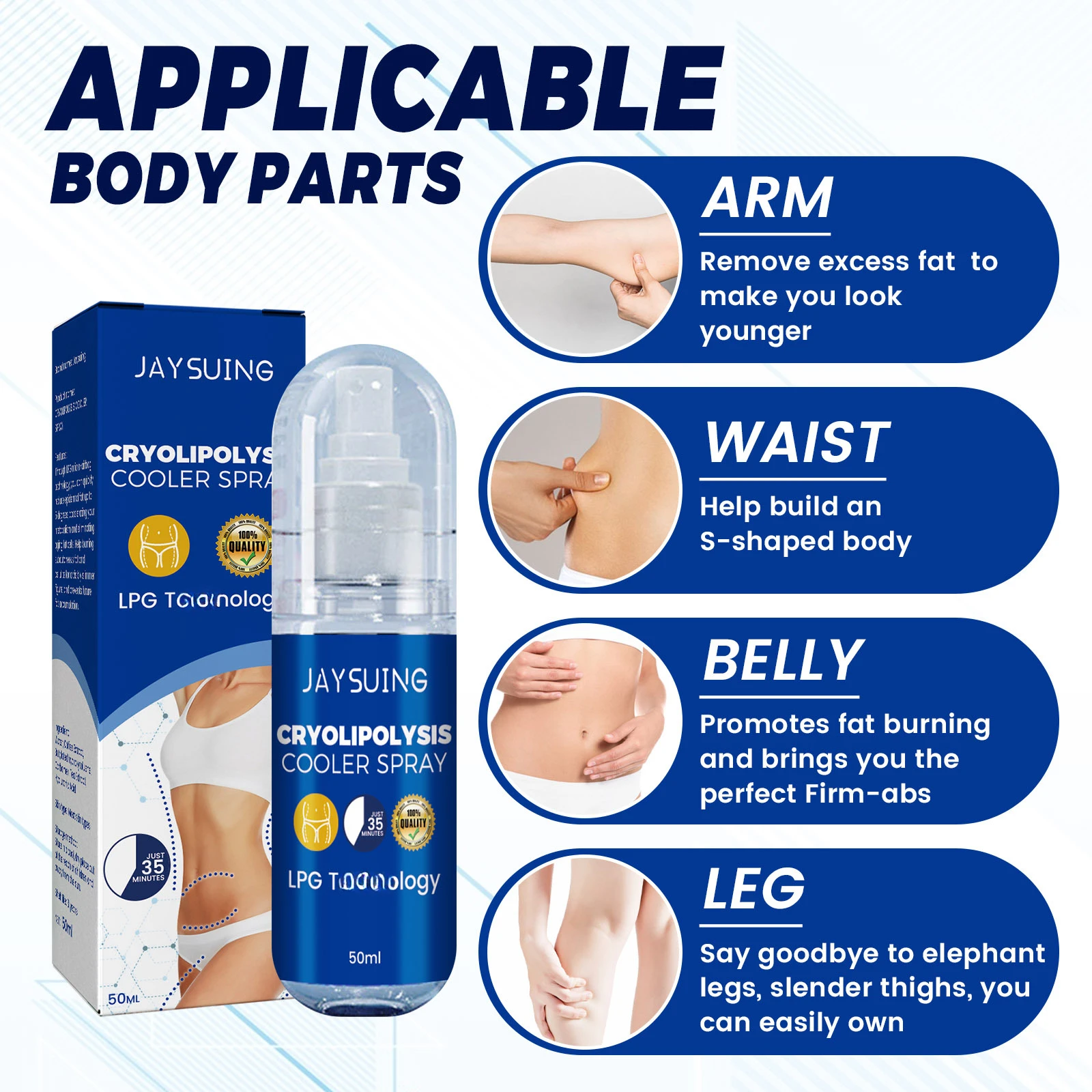 Achieve your body goals with our Cryolipolysis Cooler Spray. Say goodbye to stubborn fat and hello to a more confident, toned you. Try it today and experience the benefits for yourself!