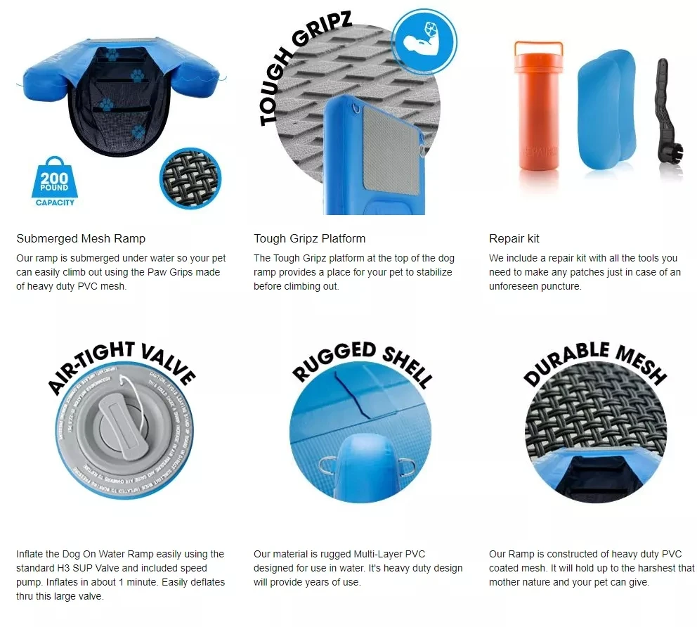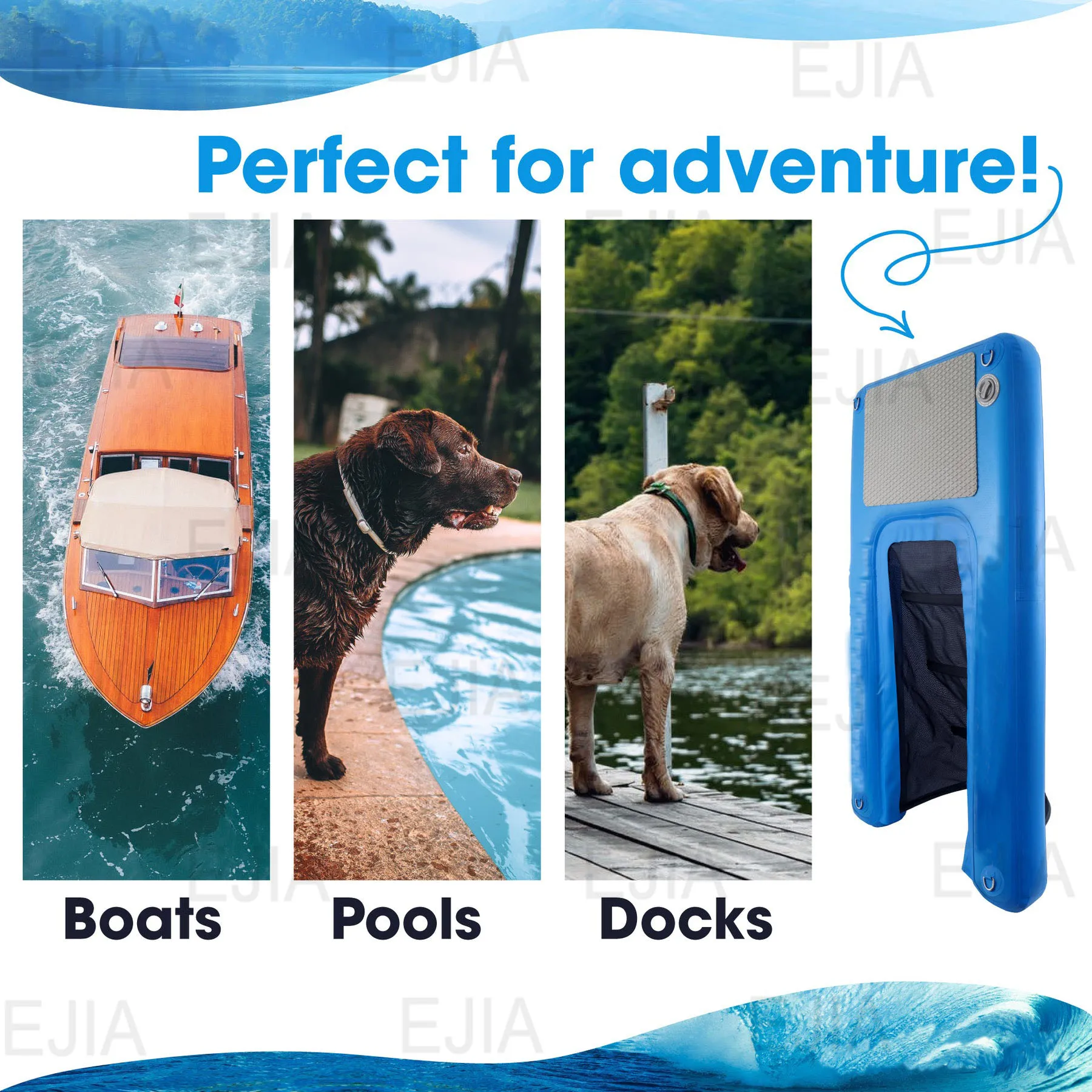 【Portable and Easy to Store】: One of the main benefits of a dog ramp boat is its lightweight and easy deflation, making it simple to transport and store. Take it with you on trips and deflate for compact storage when not in use.