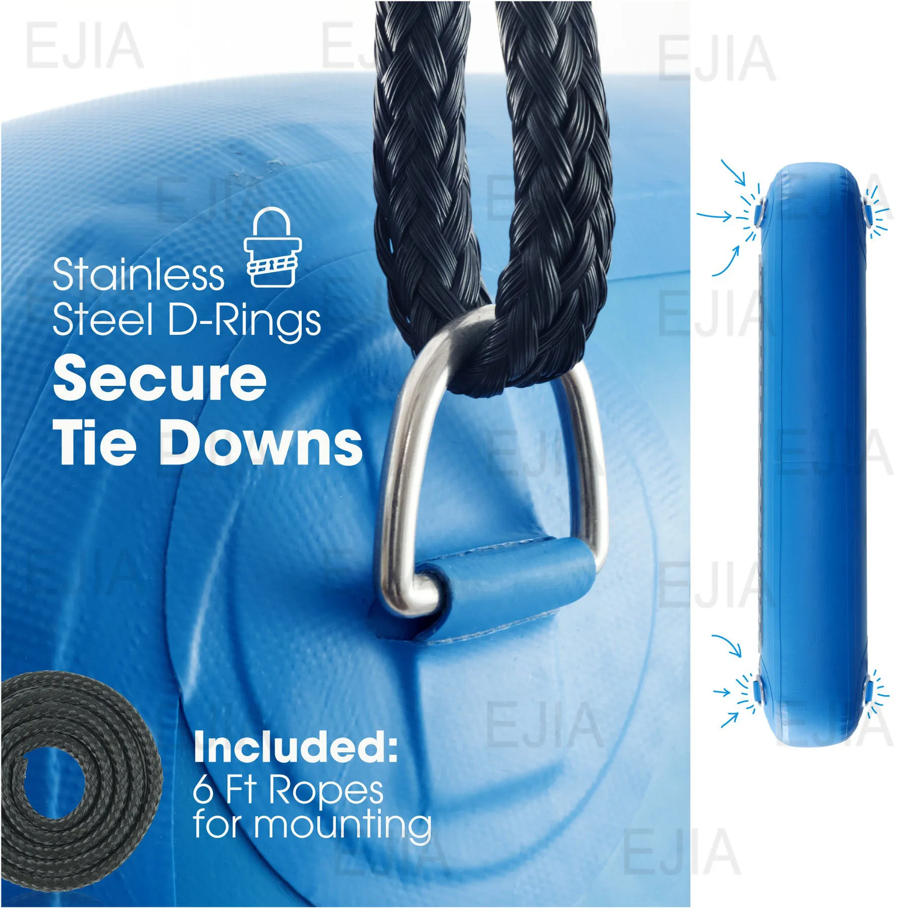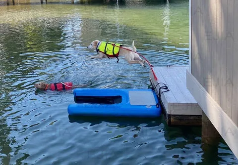 The four heavy-duty Stainless-Steel D-Rings on our ramp allow for secure tying to any surface. With two D-Rings on the top and two on the bottom, you can adjust the angle for a secure fit. We provide 2 six-foot ropes for assistance, or use your own. Securely tie it up and watch your dog enjoy the water!