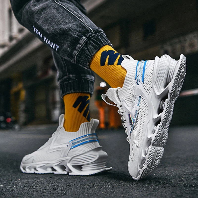 These designer men’s luxury casual blade running shoes come in sizes 39-47. They are high top soft sock sneakers that are designed for both style and comfort. These shoes are made with high-quality materials and have a sleek design that is perfect for everyday wear or more athletic activities. The blade running shoes offer both support and cushioning for the feet to ensure a comfortable fit. With a focus on combining fashion and functionality, these sneakers are a great choice for men looking for stylish and comfortable footwear.