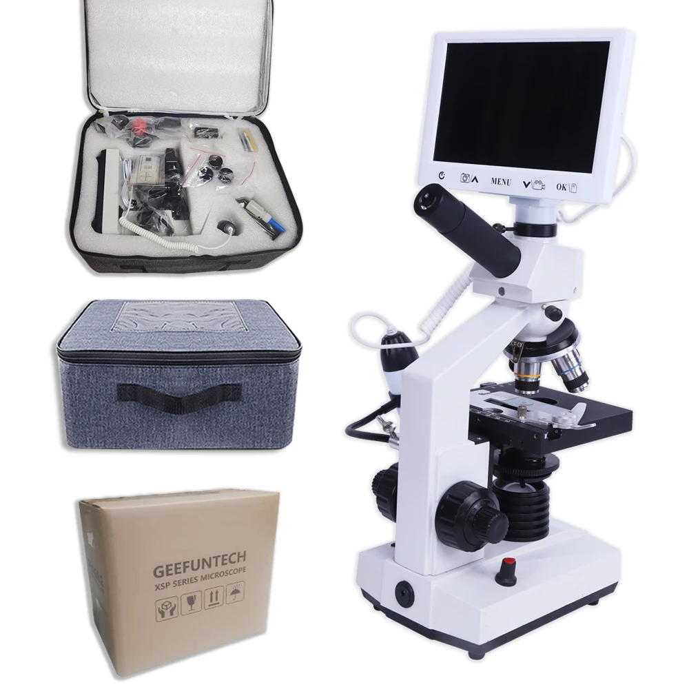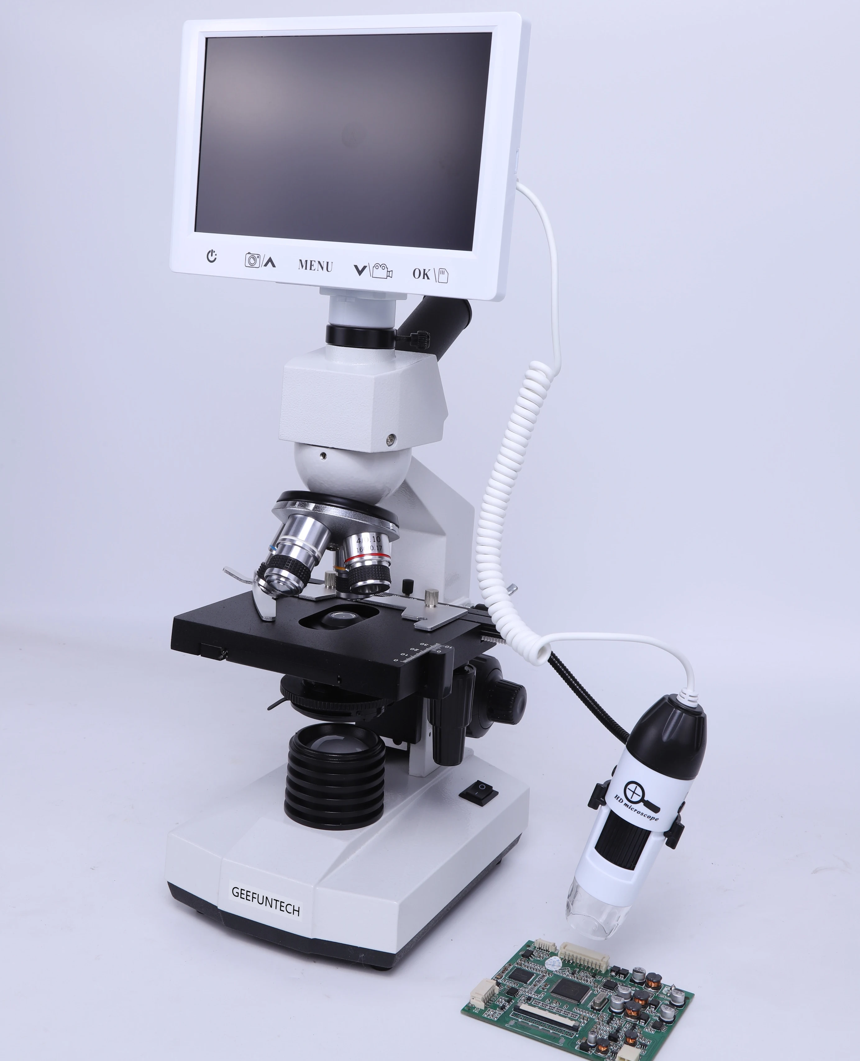 GF07 Dual-view compound microscope is designed for teaching demonstrations, clinical examinations and laboratory applications. It is an ideal microscope for teachers and students, including those in medical school or with a major in biology. great for studying fixed or live cells, hair follicles, bacteria, plants and soil, or water samples;