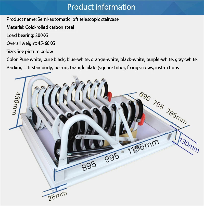 – Easy to use: With a simple pull and push mechanism, our telescopic stair is easy to operate, making it ideal for everyday use.