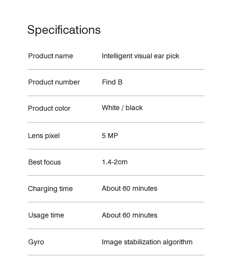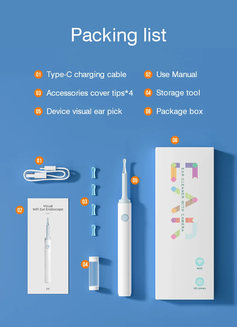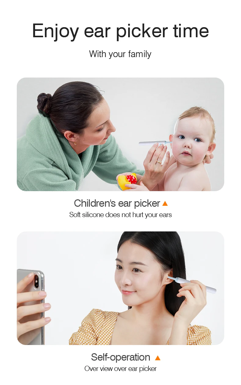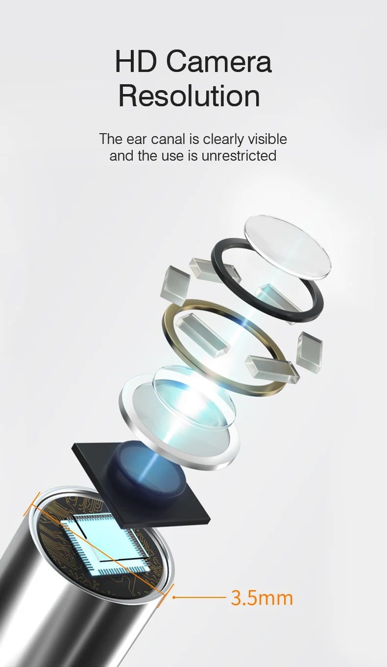 - Built-in CMOS sensor and six LED cold light lamps, earwax can be seen at a glance, easy to check and clean the ear canal.