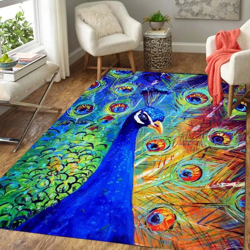Exquisite Peacock Painting Carpet Beautiful Animal Rug for Living Room…
