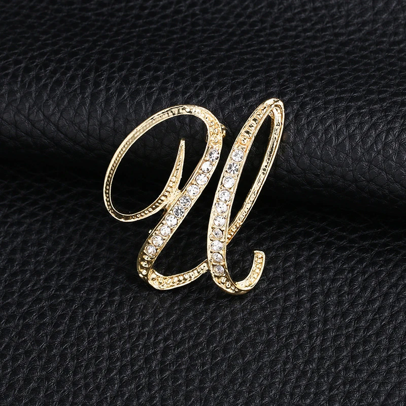 This is a fashion accessory that consists of 26 English letter pins adorned with rhinestones, available in both gold and silver colors. These brooches can be attached to clothing to add a trendy and stylish touch. Suitable for both men and women, these alphabet label badges can be used to personalize outfits and make a fashion statement. Perfect for accessorizing various types of clothing, these brooches offer a glamorous and eye-catching look. Ideal for adding a touch of individuality to any outfit, these accessories are versatile and can be worn on a daily basis.