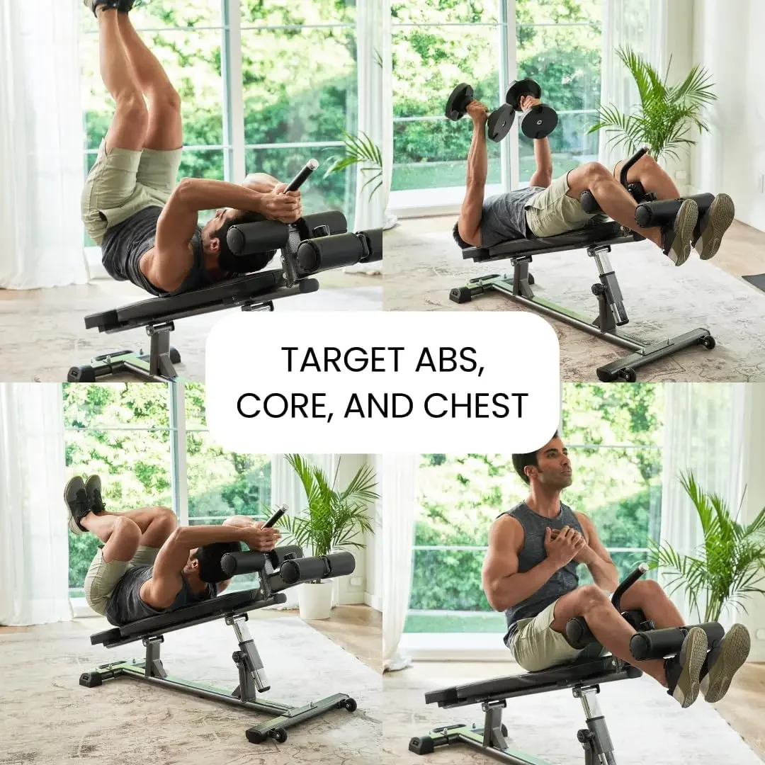 Finer Form Semi-Commercial Sit-Up Bench For Core Workouts and Decline Bench Press. Adjustable Weight Bench with Reverse Crunch Handle with 4 Adjustable Height Settings. Great Ab Workout Equipment