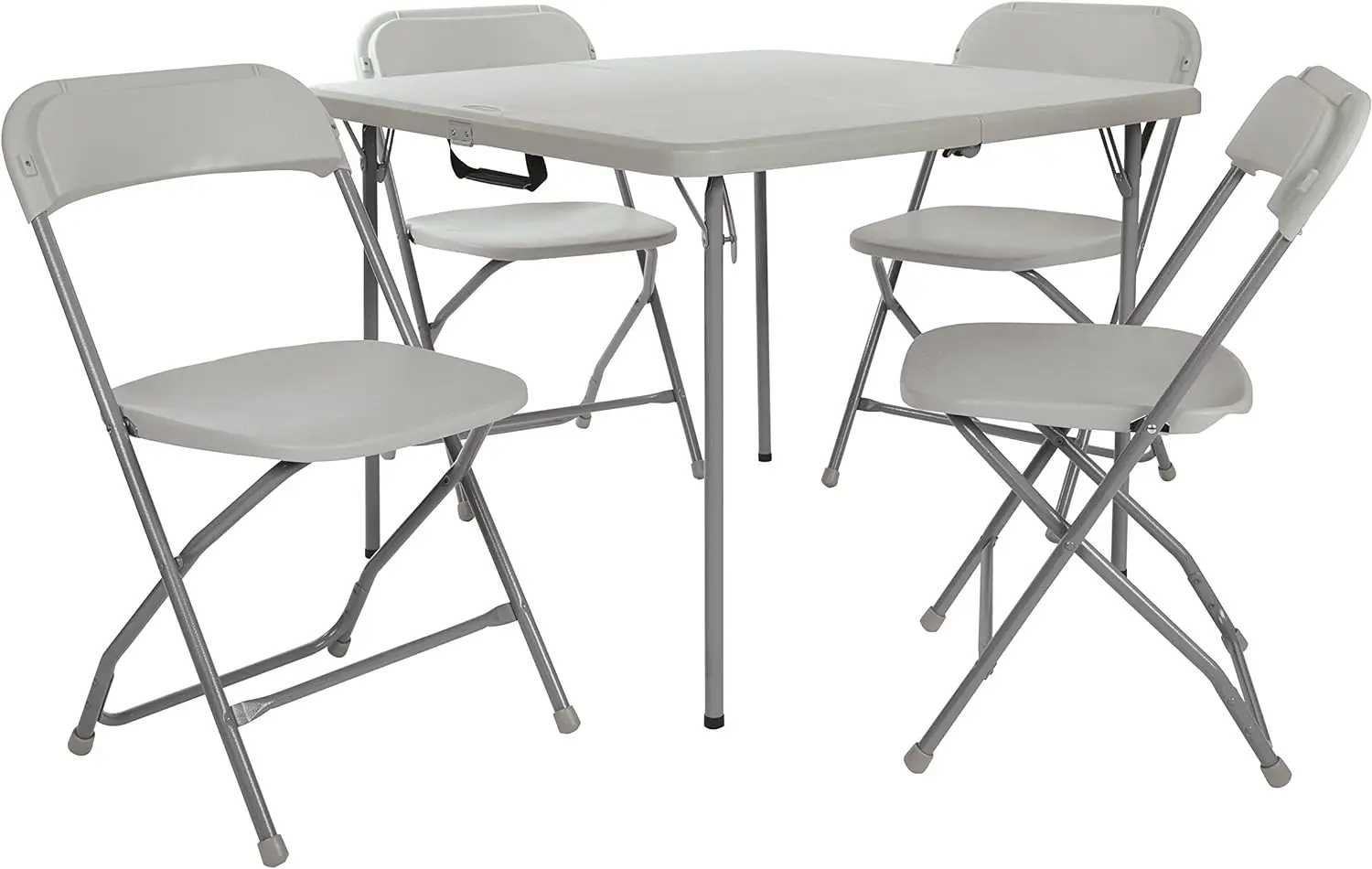 Versatile 5-piece folding table and chairs set includes 4 chairs and 1 square table