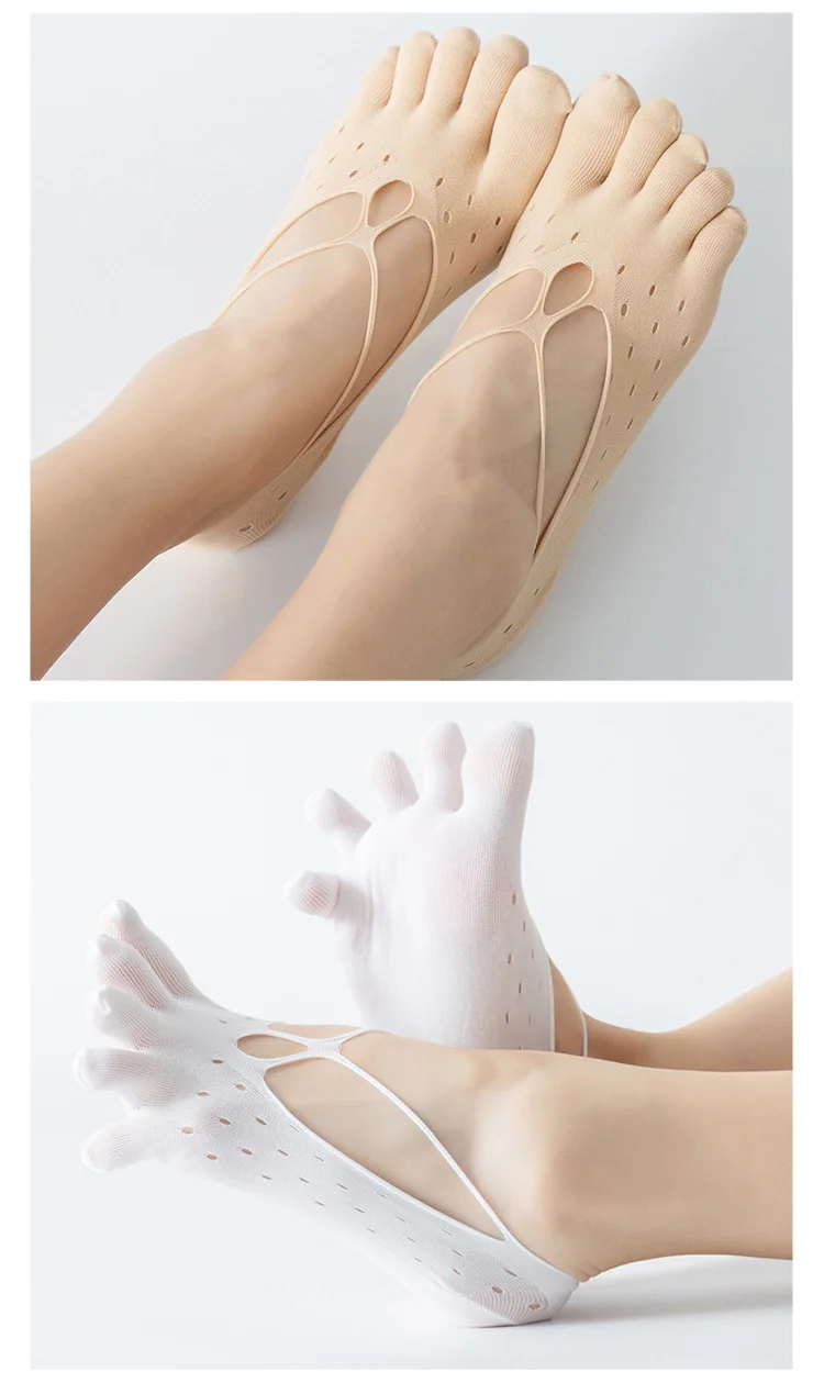 These five toe non-slip socks are designed for yoga, Pilates, barre, fitness, sports, and dance activities. They provide stability and support during workouts, with an anti-slip feature to prevent sliding on smooth floors. The socks are made for comfort and flexibility, allowing for a full range of motion while protecting the feet. They are suitable for various athletic activities and are a popular choice for those looking for added grip and stability during workouts.