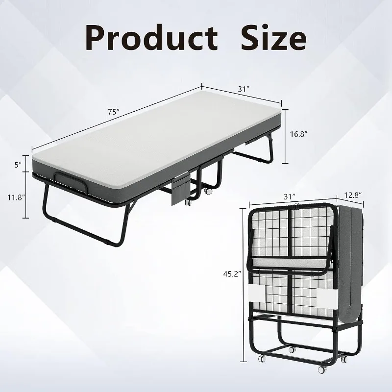 - 【STURDY & DURABLE】: Made of premium metal frame and reinforced structure, this rollaway bed has super stability and strong load-bearing capacity, which can hold a a maximum load of 300 lbs.