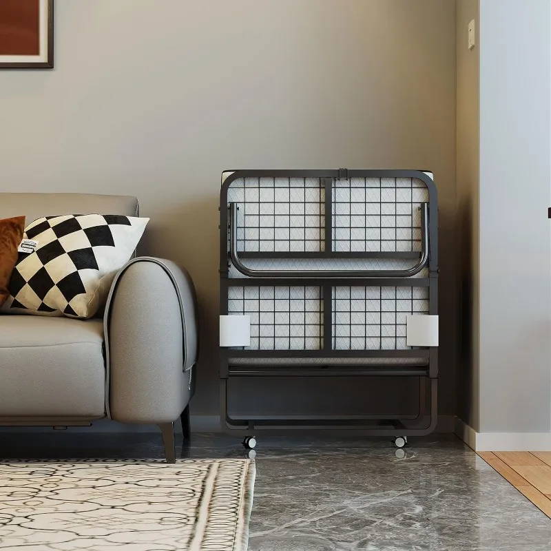 - 【COMPACT & SPACE SAVING】: The folding bed is easy to set up and fold down, Only 11.6″ thick when it folded up, and it fits easily into a small space. With 4 smooth flexible 360° swivel wheels, the portable foldable bed can be easily moved from one room to another.