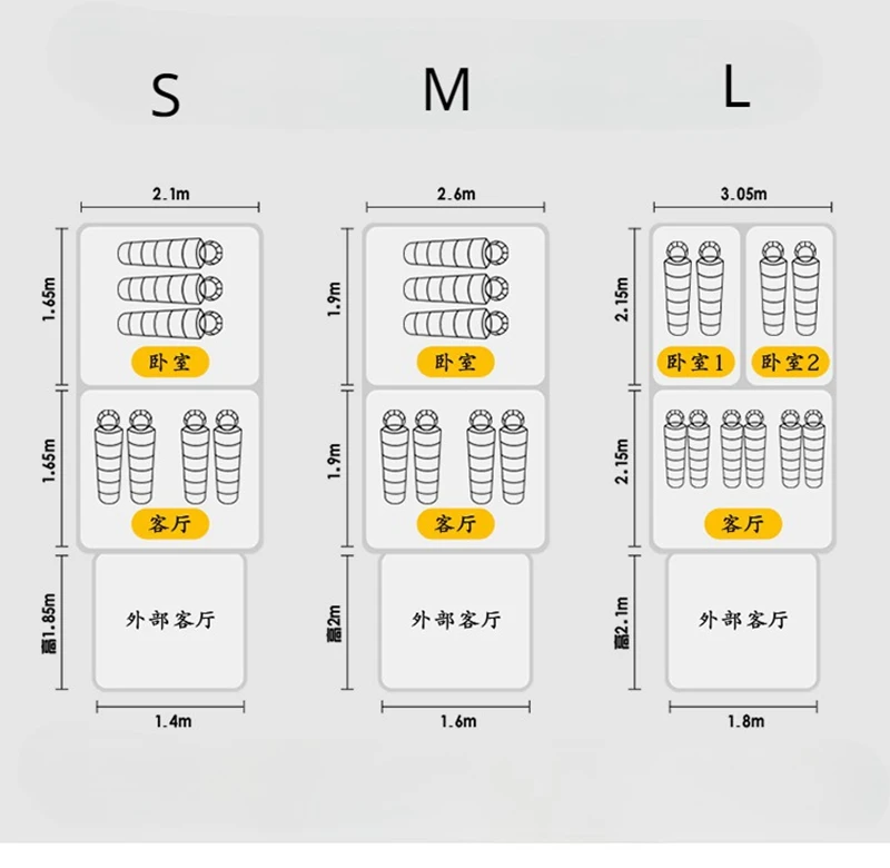 Notice:The large size tent include the partition curtain between the sleeping room.The medium size and small size has no partition curtain.