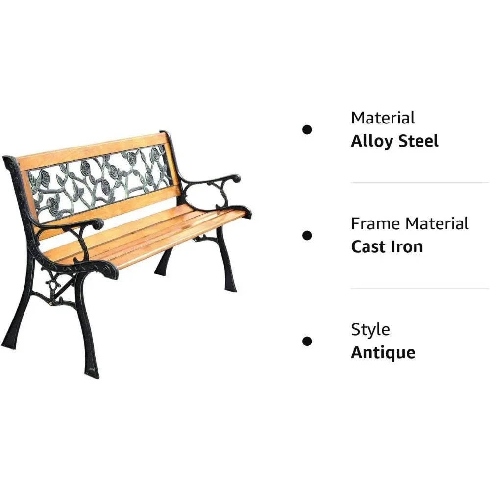 - 【Perfect Design】The lively and exquisite vines embellishments of the Garden Bench are distributed on backrest and make whole Metal Bench look beautiful. Not only does the Yard Bench offer comfortable sitting experience but also serve as a good decorative ornament.The plastic and Wood embellishments of the Garden Bench are distributed on backrest.Garden Bench Patio Bench Yard Bench Park Bench Metal Bench outdoor benches clearance