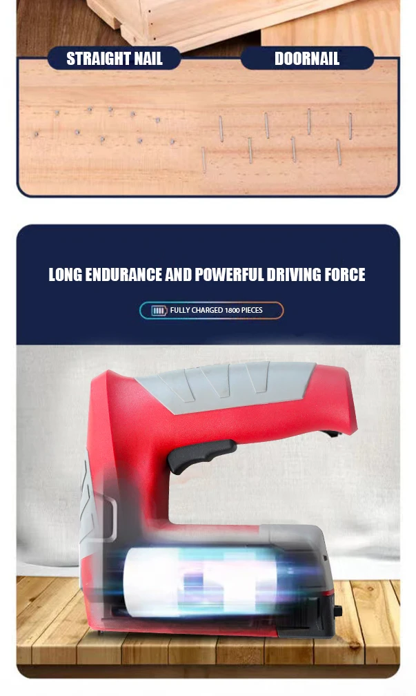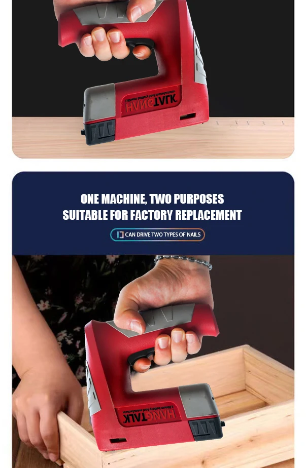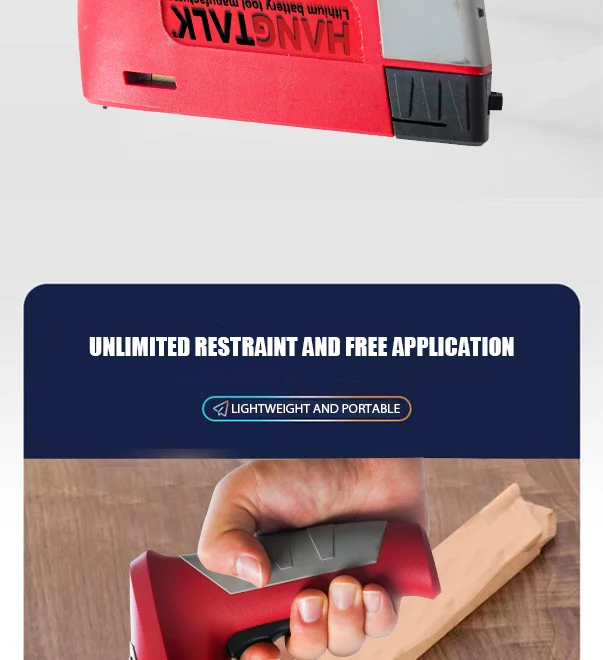 The GOBALYARD 4.2V Cordless Staple nail gun is a 50W Mini electric Pin Nailer that offers portability and ease of use. This cordless nail gun is powered by a 4.2V battery, making it convenient for various projects without the need for a power outlet. It is suitable for upholstery, carpentry, and other DIY tasks. The nail gun is lightweight, compact, and easy to maneuver, making it ideal for both professionals and hobbyists. With its efficient design and powerful performance, the GOBALYARD 4.2V Cordless Staple nail gun is a versatile tool for any workshop or home improvement project.