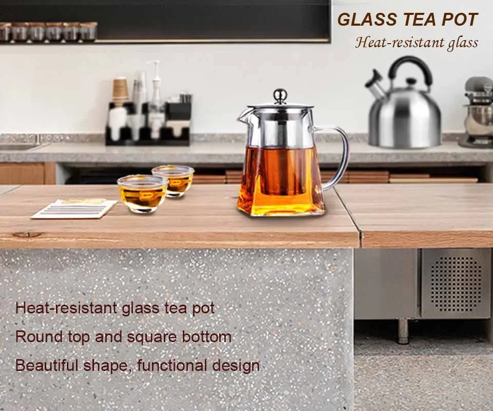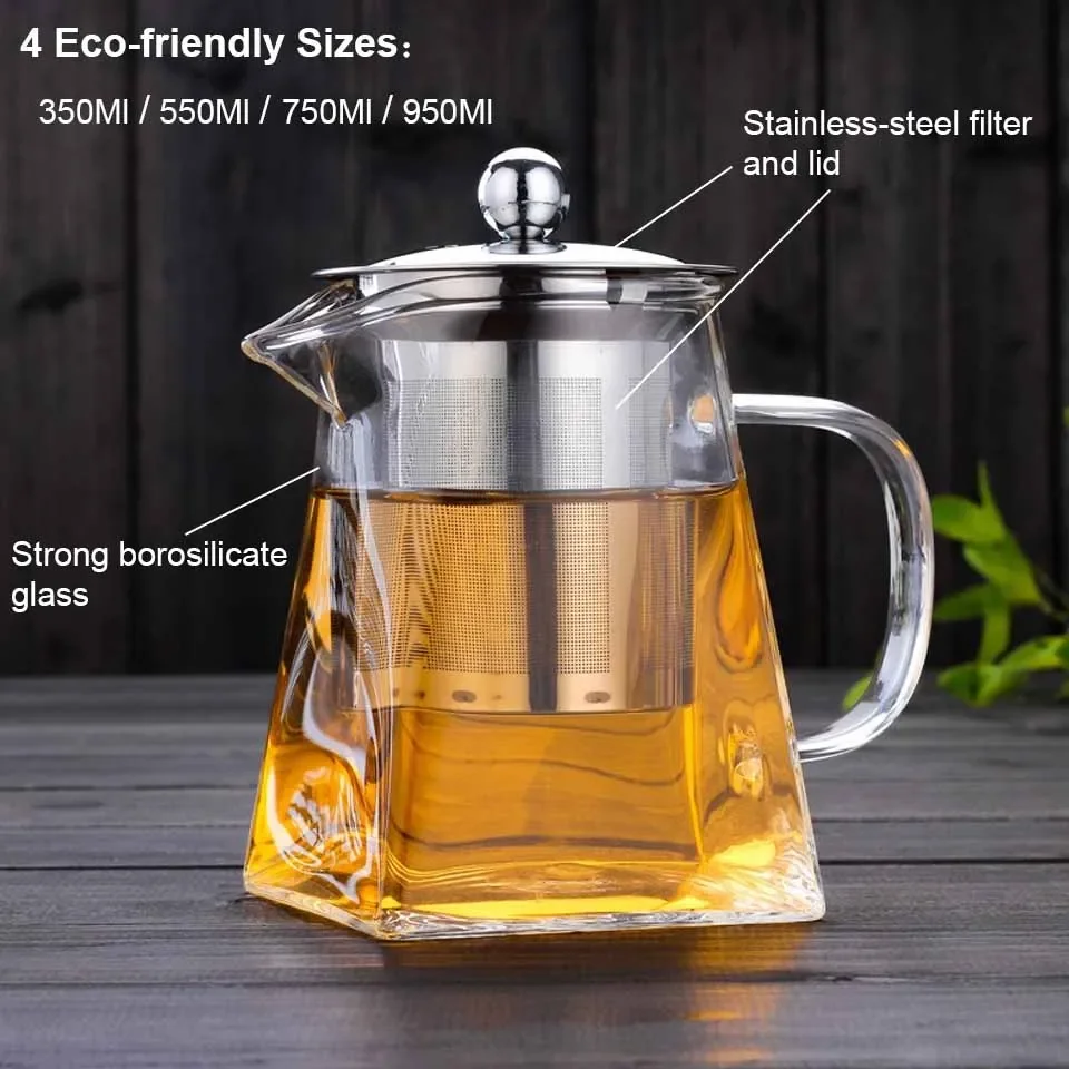 Introducing our premium Heat Resistant Glass Teapot With Stainless Steel Tea Infuser Filter. This elegant teapot is perfect for brewing your favorite loose leaf teas with ease. Made from high-quality heat resistant glass, this teapot is designed to withstand high temperatures without cracking or breaking. The durable stainless steel tea infuser filter ensures that your tea leaves are fully submerged, allowing for optimal steeping and flavor extraction. Whether you’re enjoying a soothing cup of chamomile or a bold black tea, this teapot is sure to enhance your tea-drinking experience. Upgrade your tea brewing routine today with our Heat Resistant Glass Teapot With Stainless Steel Tea Infuser Filter.