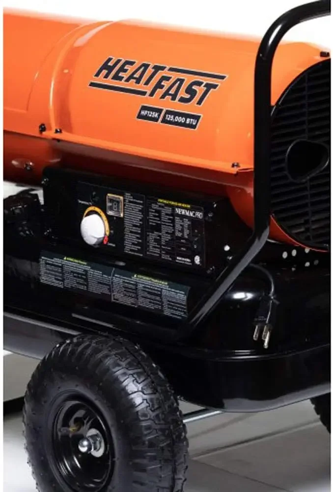 HF125K Portable Home, Jobsite, Construction Site Forced Air Kerosene/Diesel Salamander Torpedo Space Heater with Thermostat Temperature Control, 125,000 BTU, orange