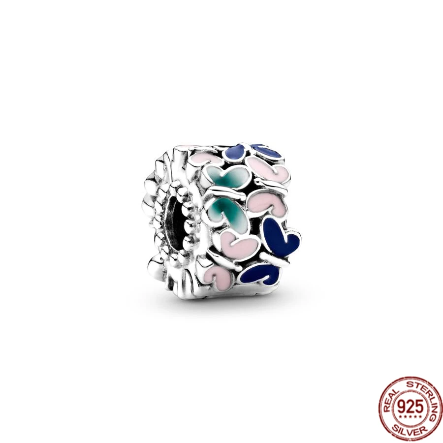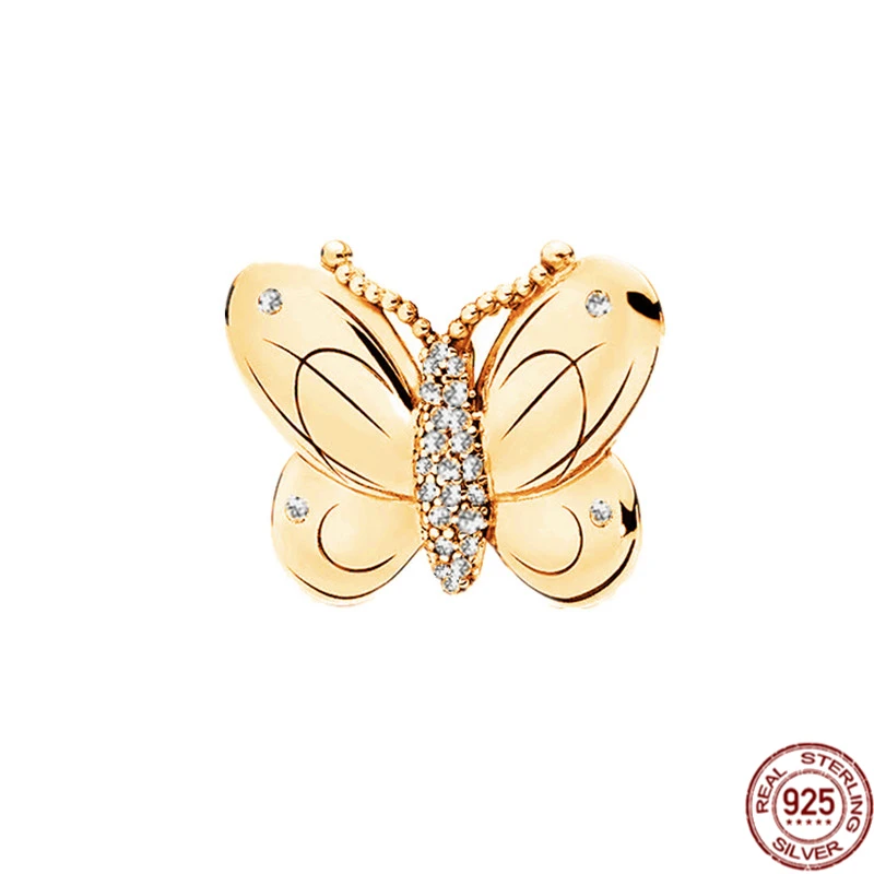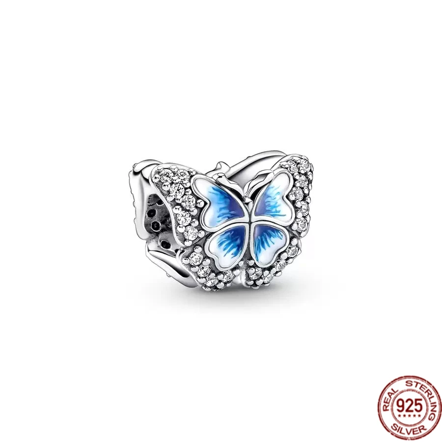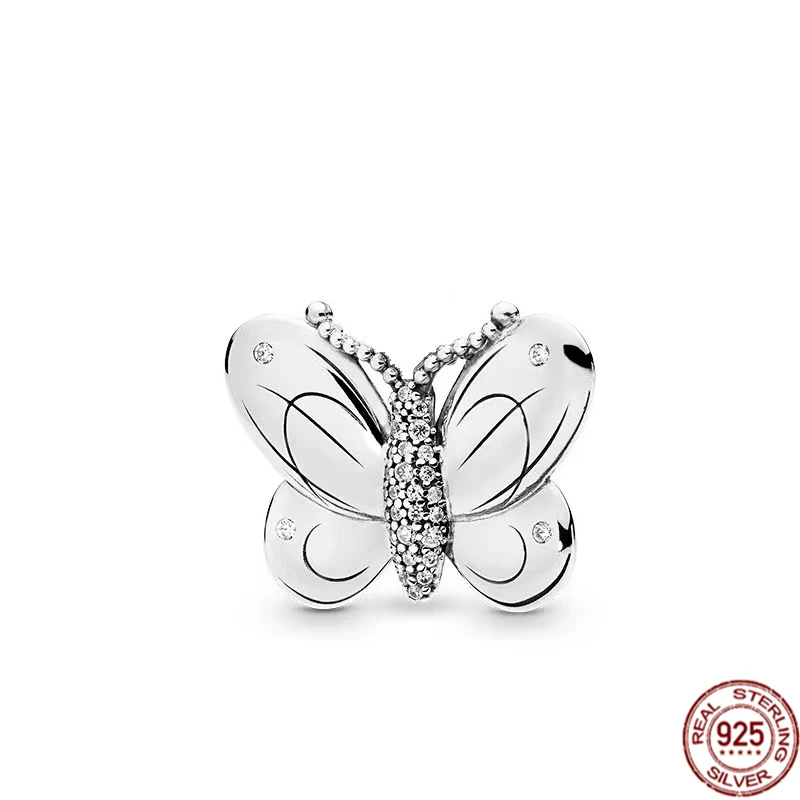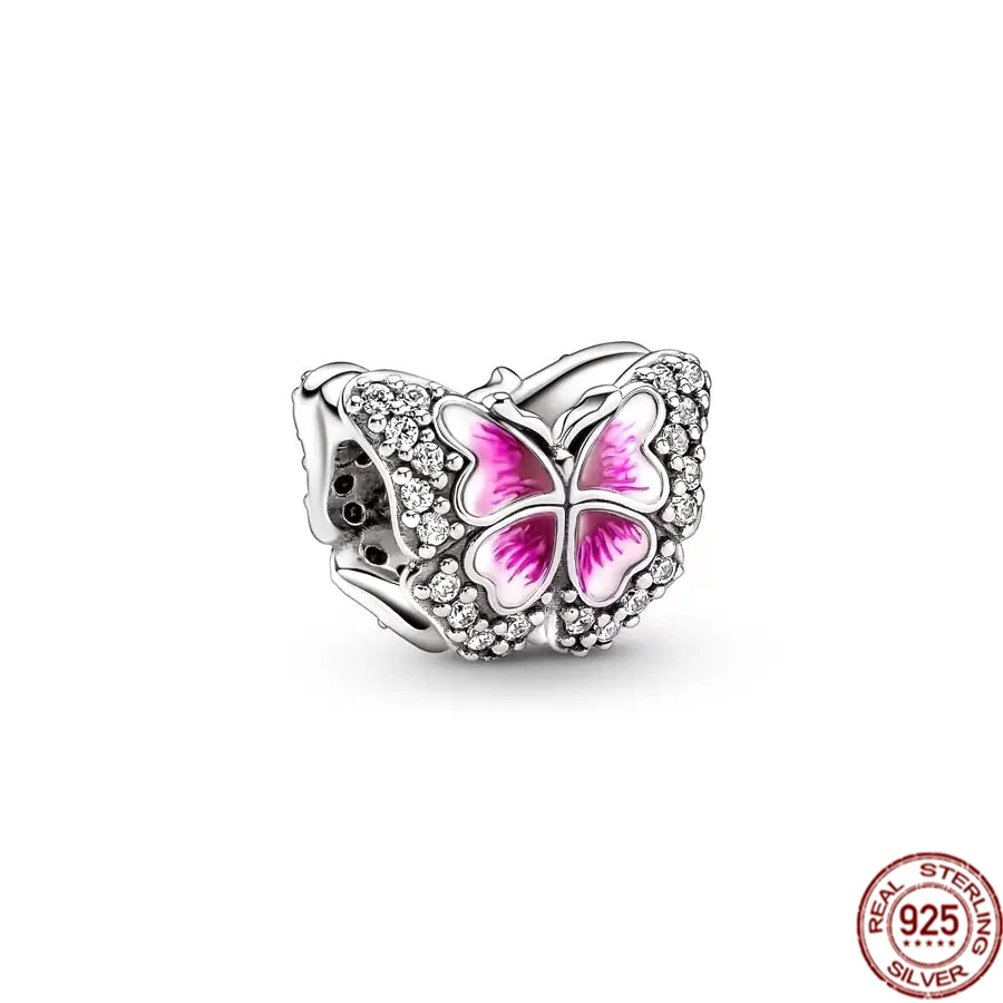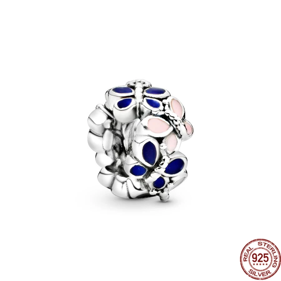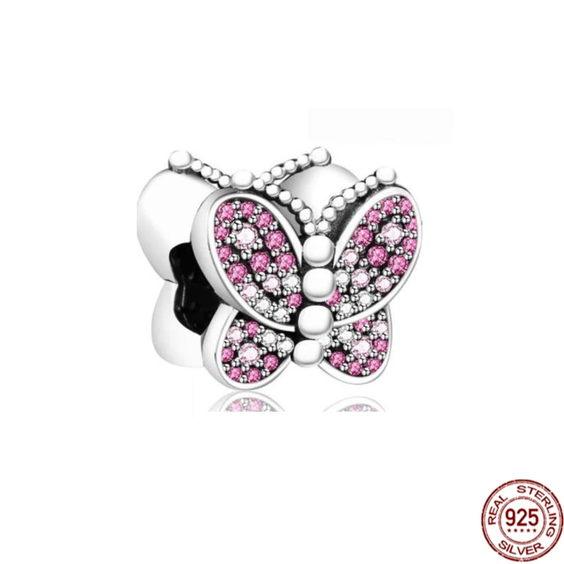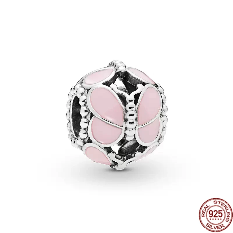 A hot sale 925 sterling silver charm bead in sparkling blue, pink, and golden colors featuring a butterfly design is now available for women to create DIY jewelry. This charm bead is compatible with original Pandora bracelets and can be used to add a touch of elegance and uniqueness to any piece of jewelry. Perfect for those looking to add a pop of color and whimsical flair to their accessories, this butterfly charm bead is sure to make a statement.