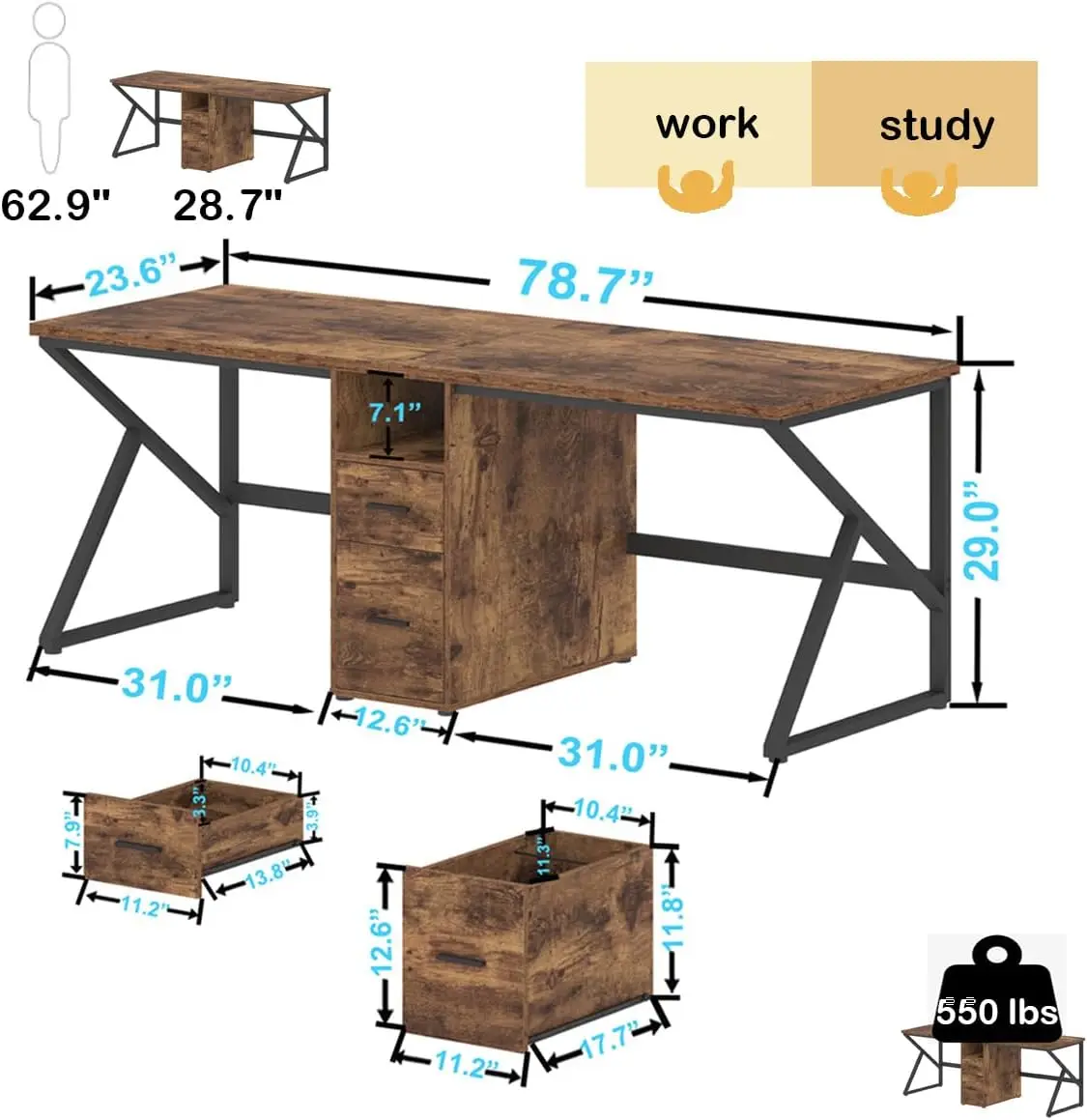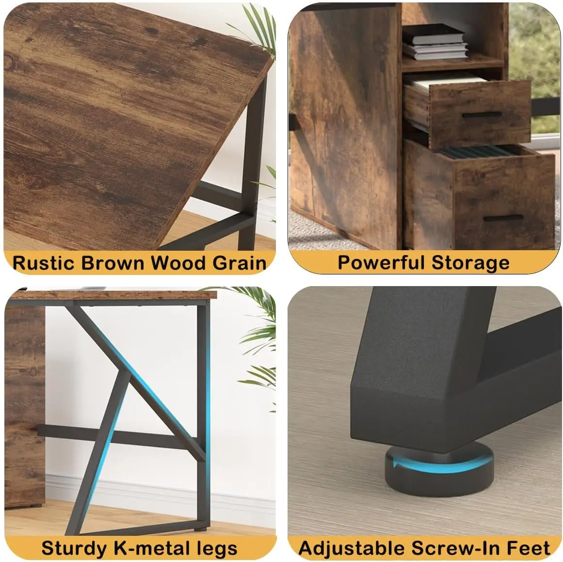 - [Flexible and Practical Design] – The wood desk features a practical and simple design that combines two desks and a storage shelf, making it perfect for constructing a comfortable workstation at home. This office desk with a rustic brown industrial-style design, which looks robust and powerful, giving people a sense of stability and high quality. The desk is suitable for children’s bedroom, living room, office, and work space.