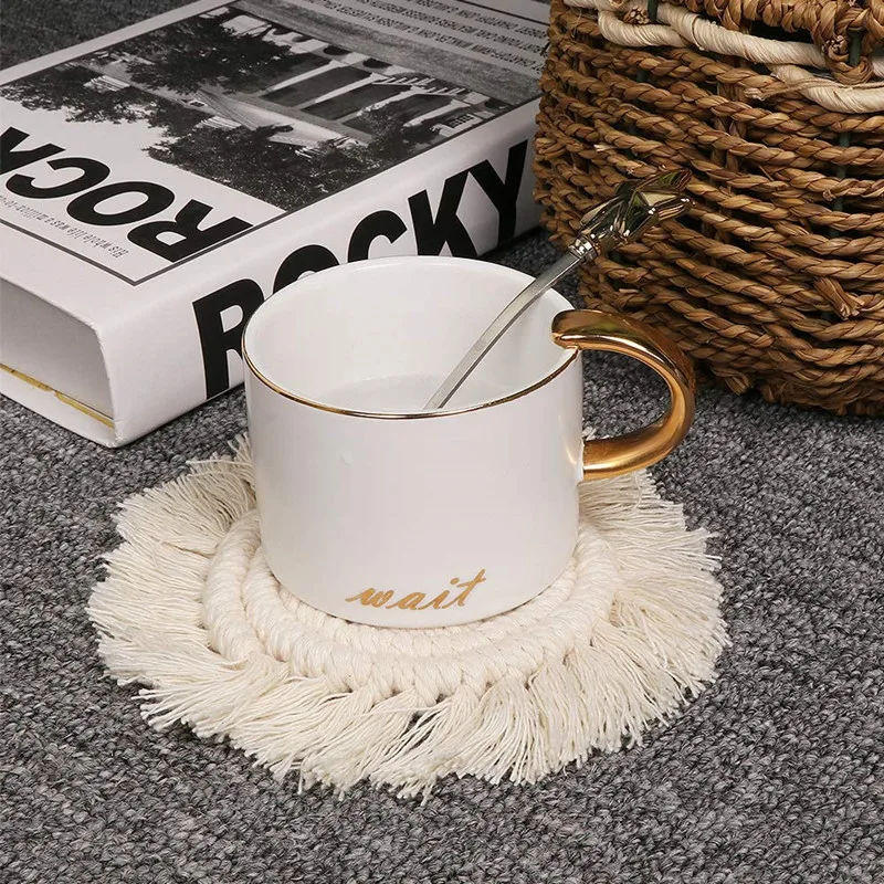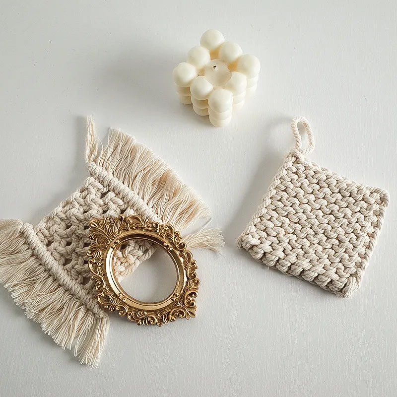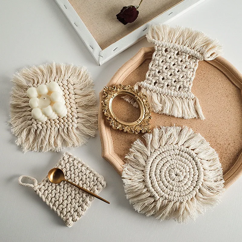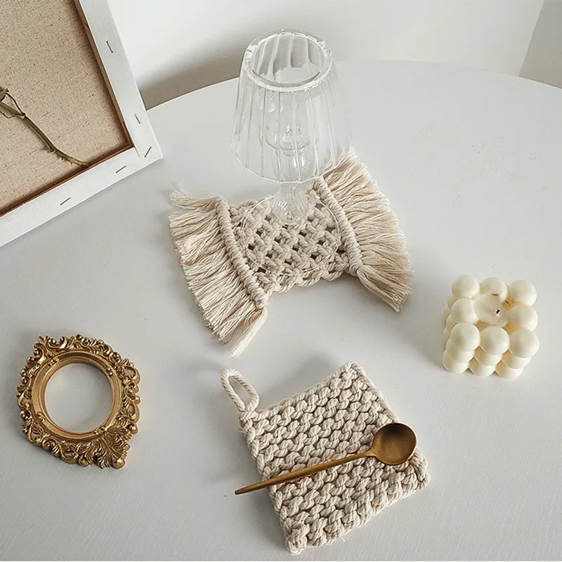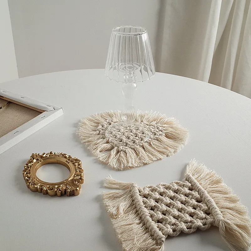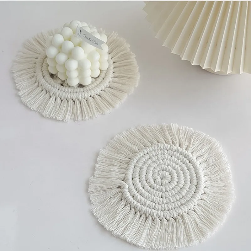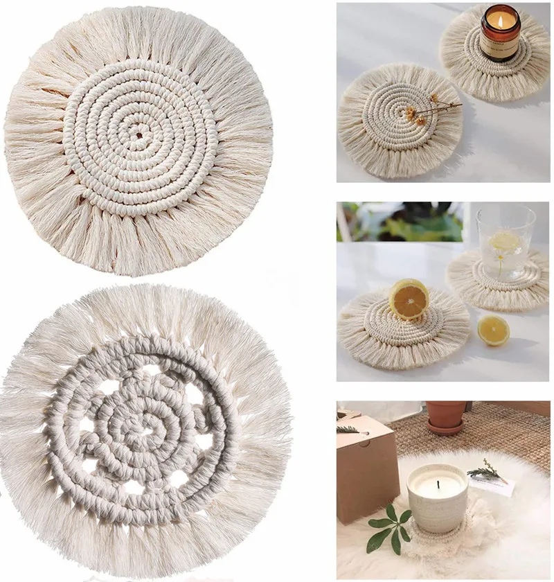 Cotton Braid Coaster Handmade Macrame Cup Cushion Bohemia Style Non-slip Cup Mat