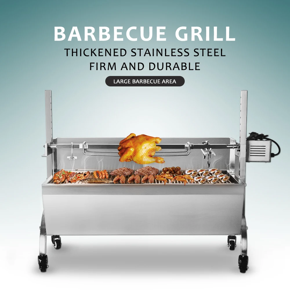 ITOP Electric Automatic BBQ Grill Manual Spinning Charcoal Kebab Bake Grill Stove Trolley Lamp Rotisserie Spit Roaster Grill