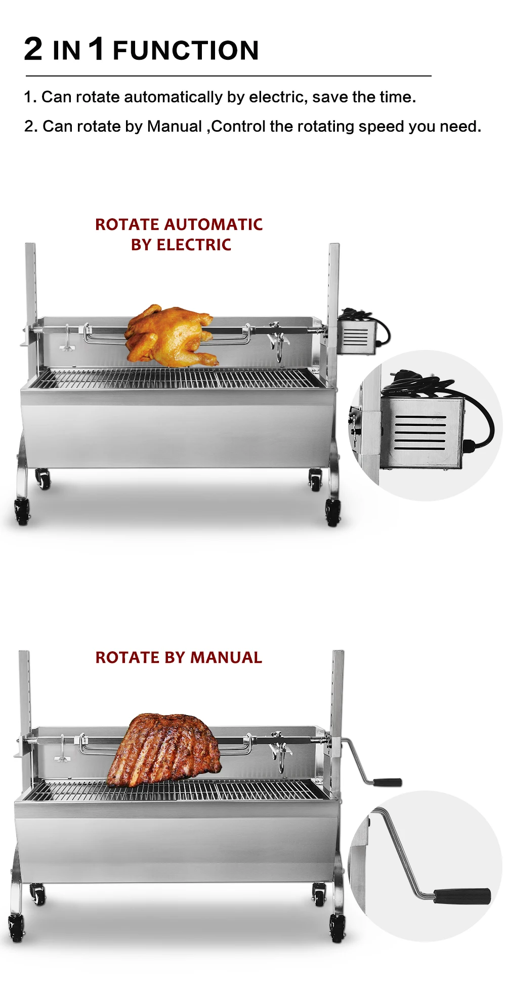With its manual spinning feature, you can ensure even cooking and perfectly charred results every time. The charcoal element adds a smoky flavor to your dishes, giving them that authentic grilled taste that everyone loves.