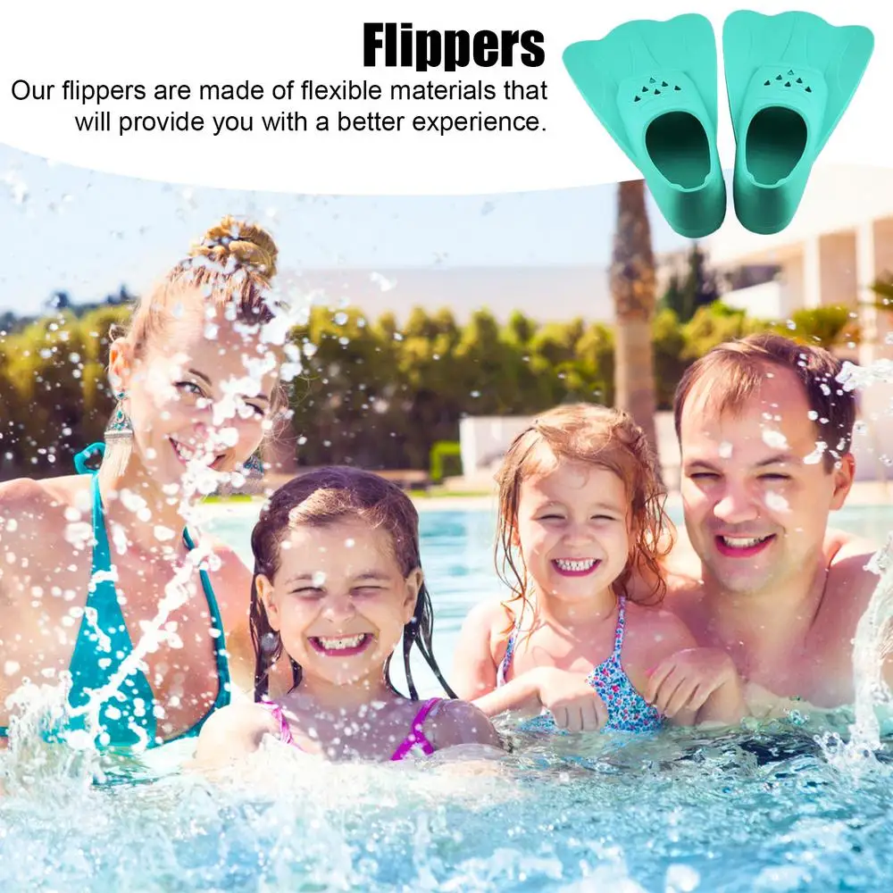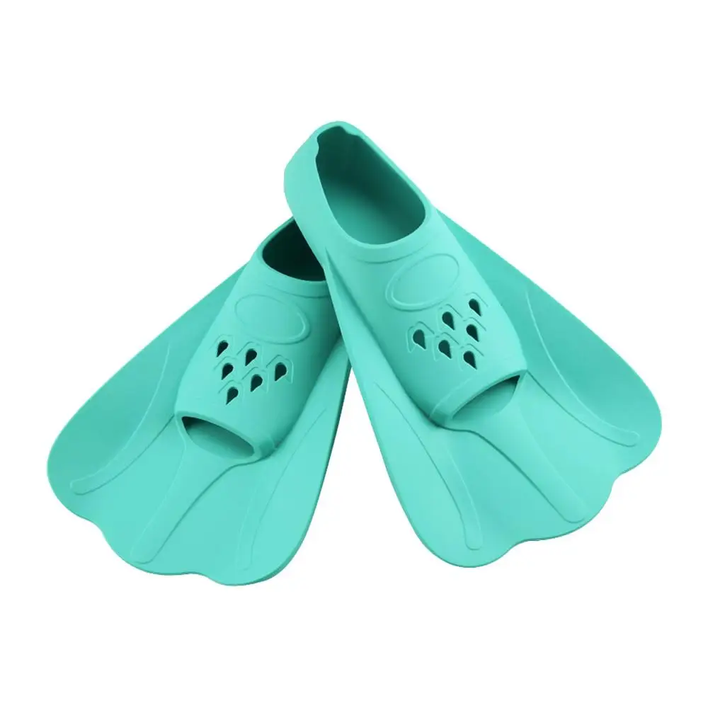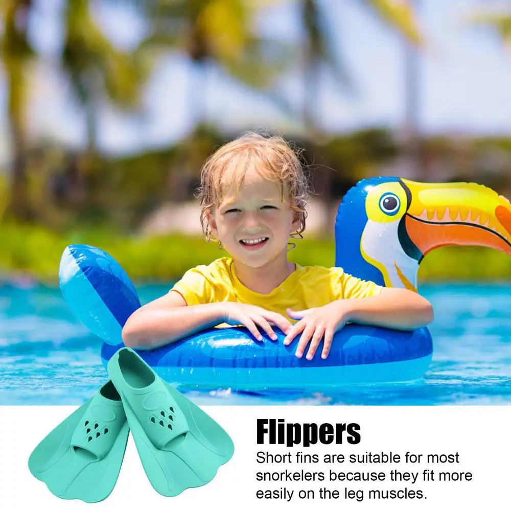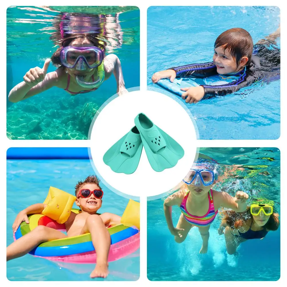 The silicone material provides a snug fit for the foot, ensuring a secure and comfortable swimming experience for young swimmers. The short design of the flippers allows kids to easily maneuver through the water, helping them to build confidence and improve their swimming technique.