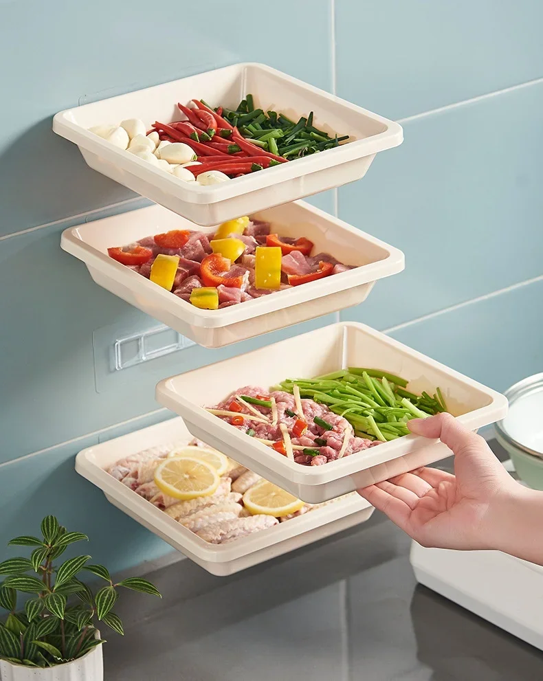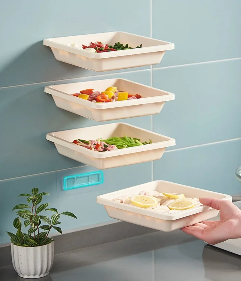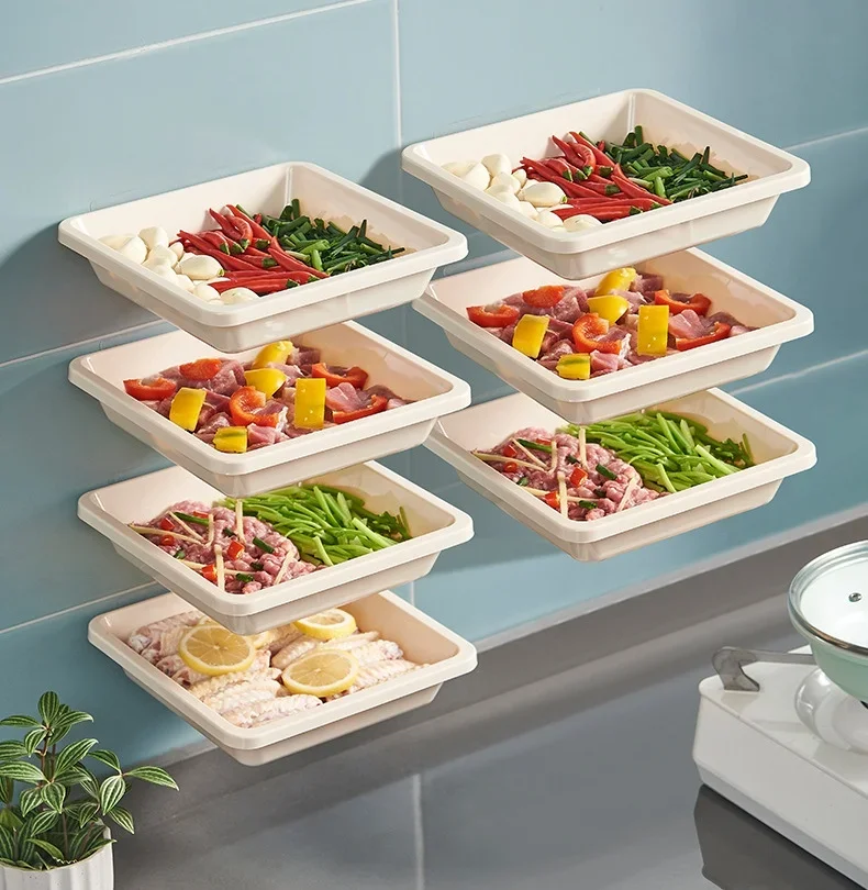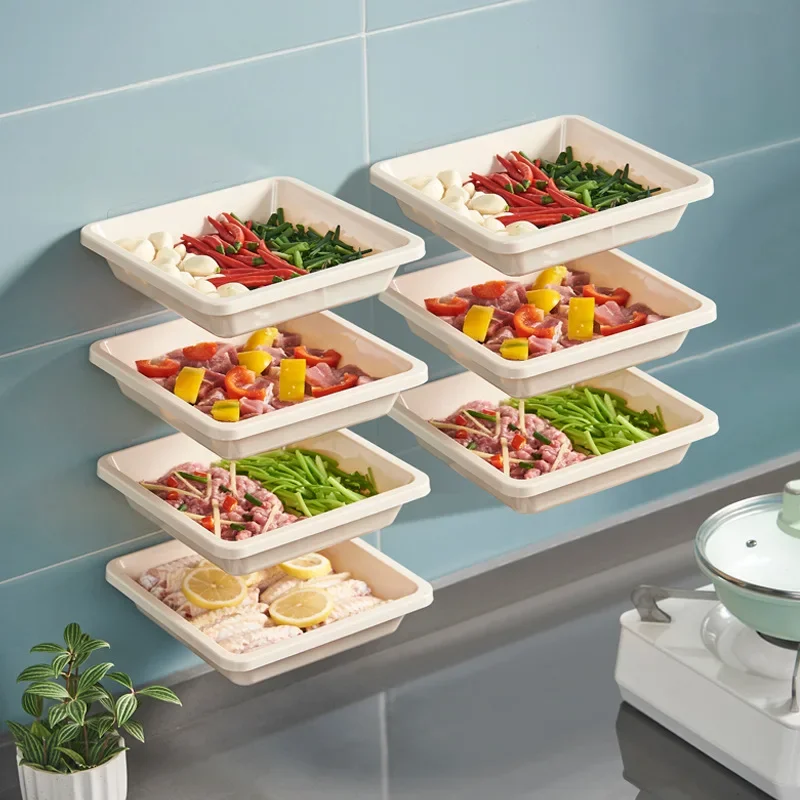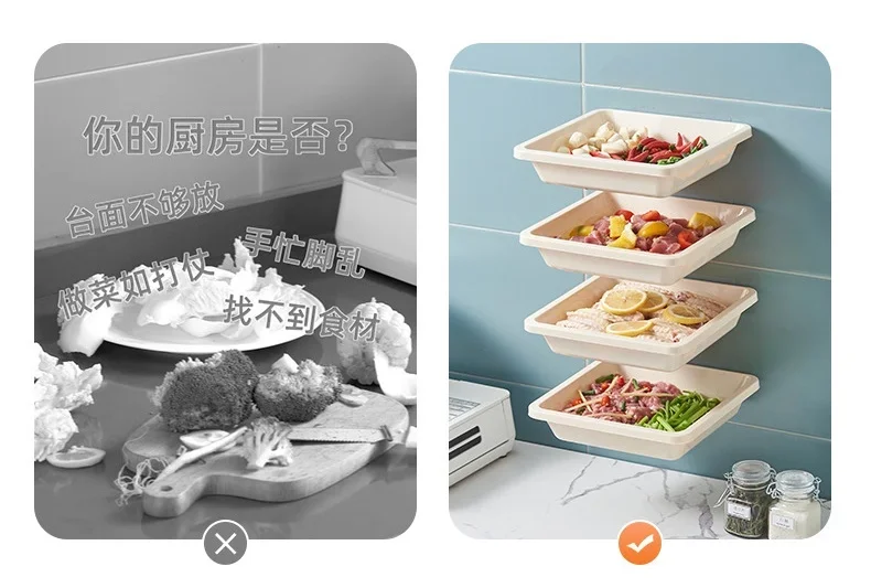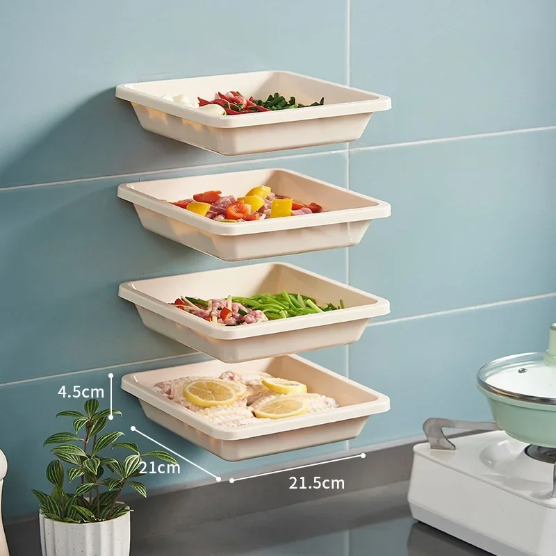 The kitchen preparation plate organizer is a multi-functional wall mount rack that allows for easy storage and organization of cooking dishes and trays. This punch-free rack is designed to save space and keep kitchen items organized and easily accessible. It is suitable for a variety of kitchen utensils and can be mounted on the wall for easy access. The organizer is a convenient solution for keeping the kitchen tidy and maximizing space efficiency.