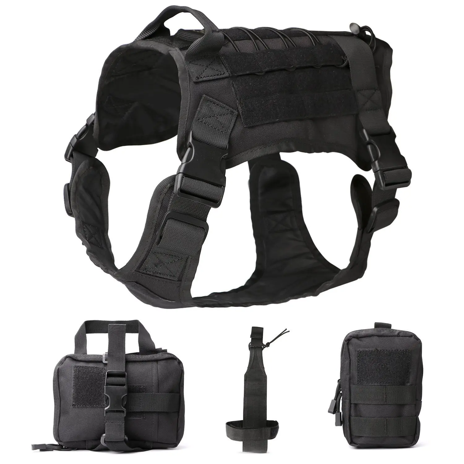 Tactical Dog Harness Military for Large Dog Vest with Side Bags Pouches for Military Service Dog Working Training