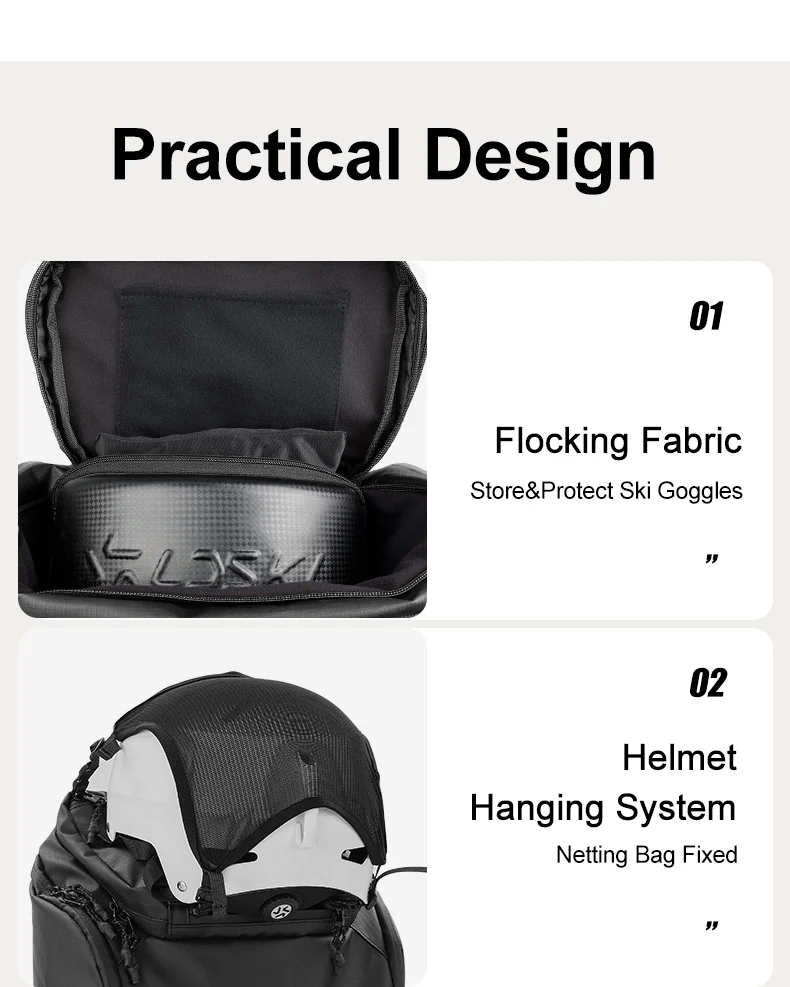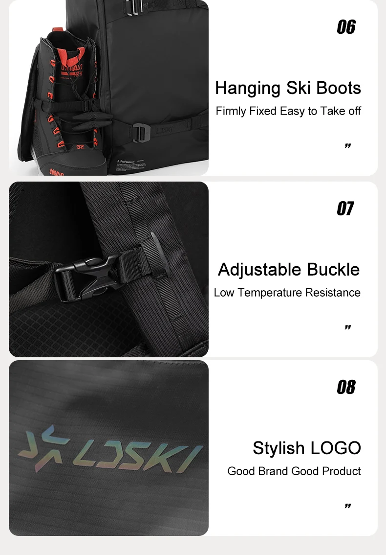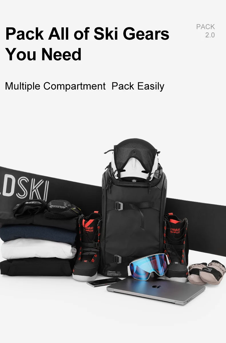 The LDSKI 35L ski boots bag is designed for men and women, offering a small and lightweight clamshell type design. The bag is waterproof and wear-resistant, making it durable for carrying ski boots and other gear. It features a hanging system to easily store and transport skis, as well as other snowboarding equipment. The backpack is spacious with a 35L capacity, perfect for storing all necessary ski gear. Overall, this ski boots bag is a convenient and practical option for those looking for a reliable and functional way to transport their equipment on the slopes.