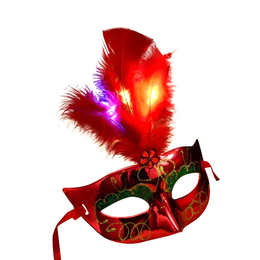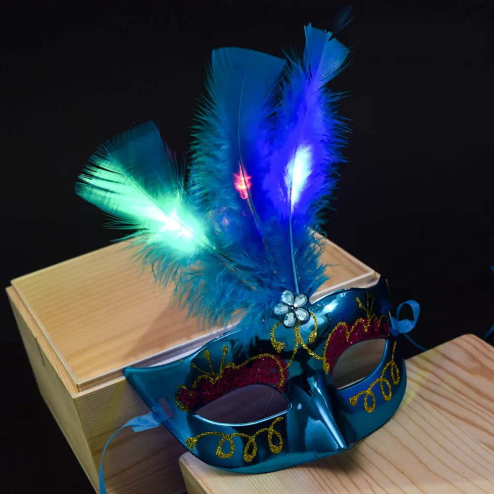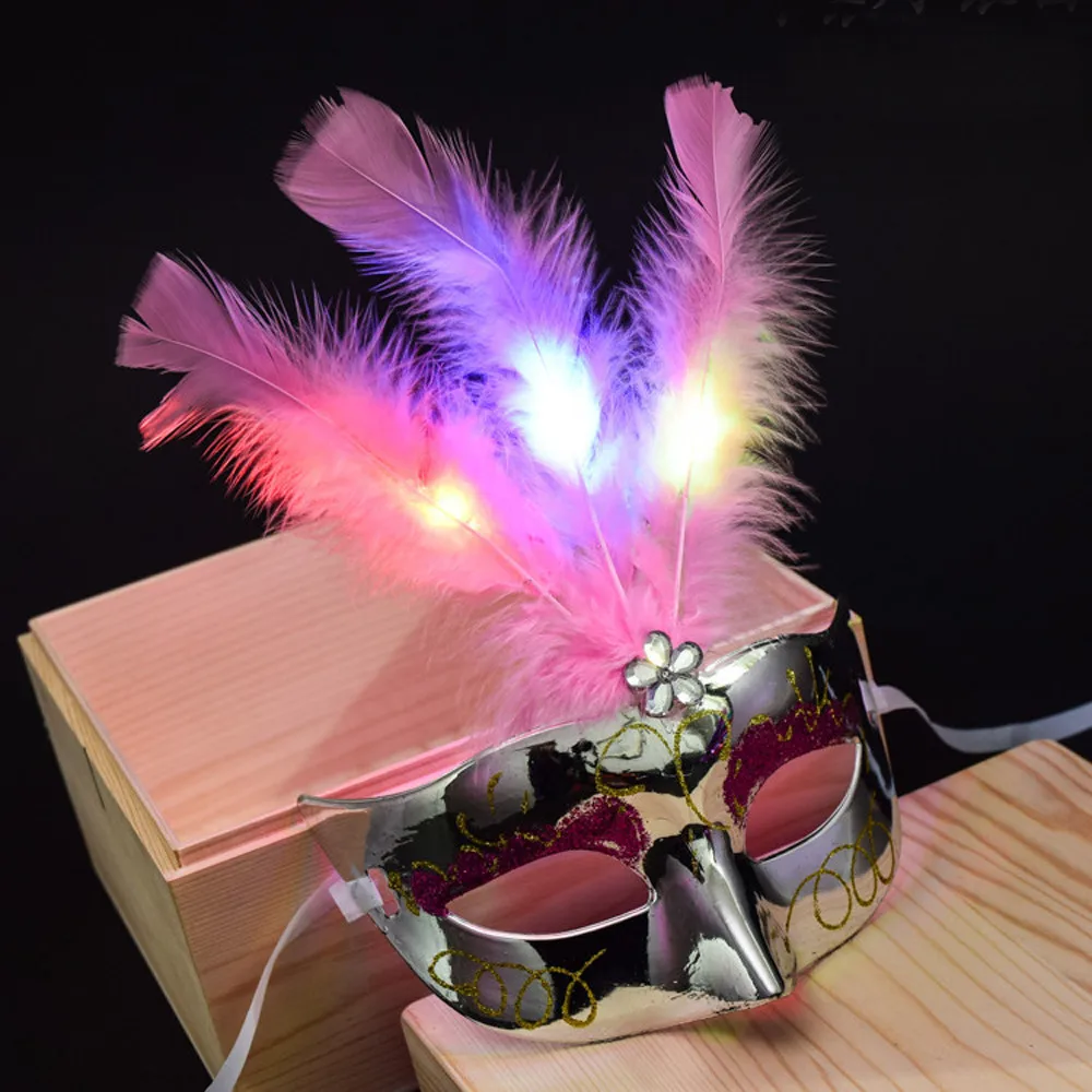 HOT Women Venetian LED Mask Masquerade Fancy Dress Party Princess Feather Masks