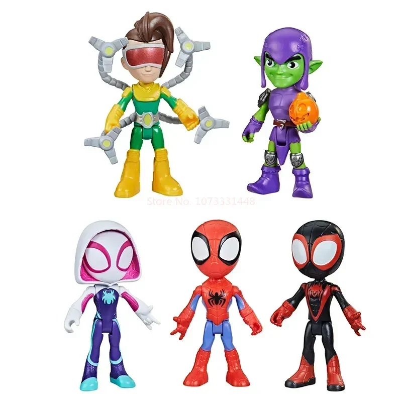 The content describes a Marvel Legends action figure set featuring Spider-Man, Miles Morales, Ghost-Spider, and Black Panther. The action figures are 4 inches tall and come with a toy car. The set is inspired by the animated series “Spidey and his Amazing Friends.” This collection is designed for kids and features popular characters from the Marvel universe, allowing children to recreate their favorite superhero adventures.
