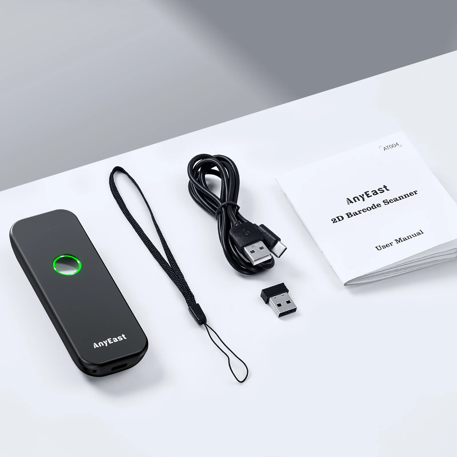 Mini 2D Wireless Barcode Scanner, Anyeast Portable 3-in-1 Bluetooth & 2.4G & USB Wired QR 1D Bar Code Reader for Inventory Computer Tablet iPhone iPad, Work with Windows POS Android iOS