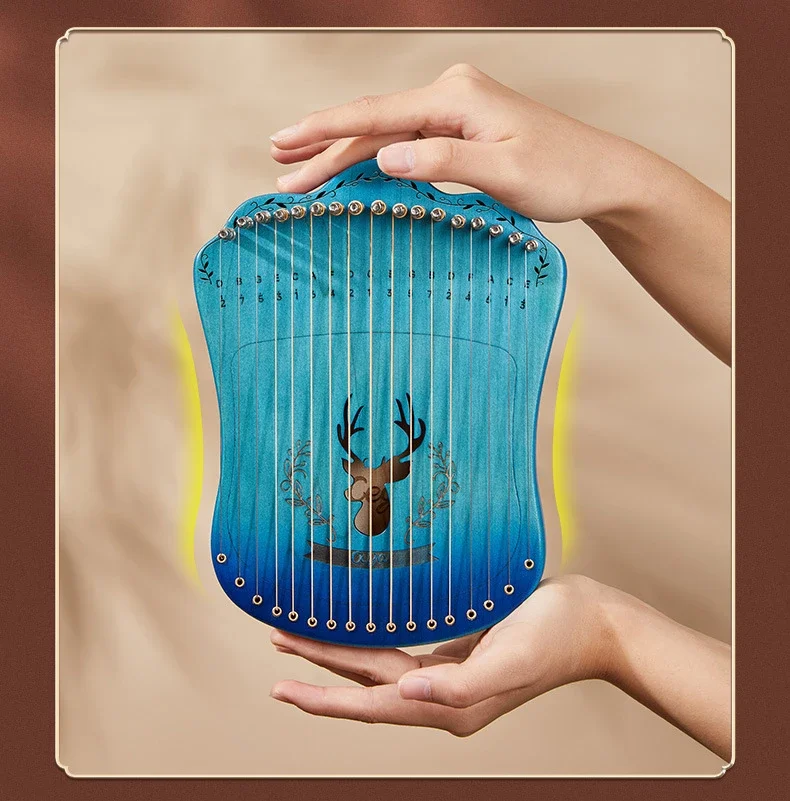 Mini Portable Fingerplay Lyre Harp Piano with Tuning Stick – Cega 17 Strings Harp Lyre – Musical Beginner Stringed Instrument Gift