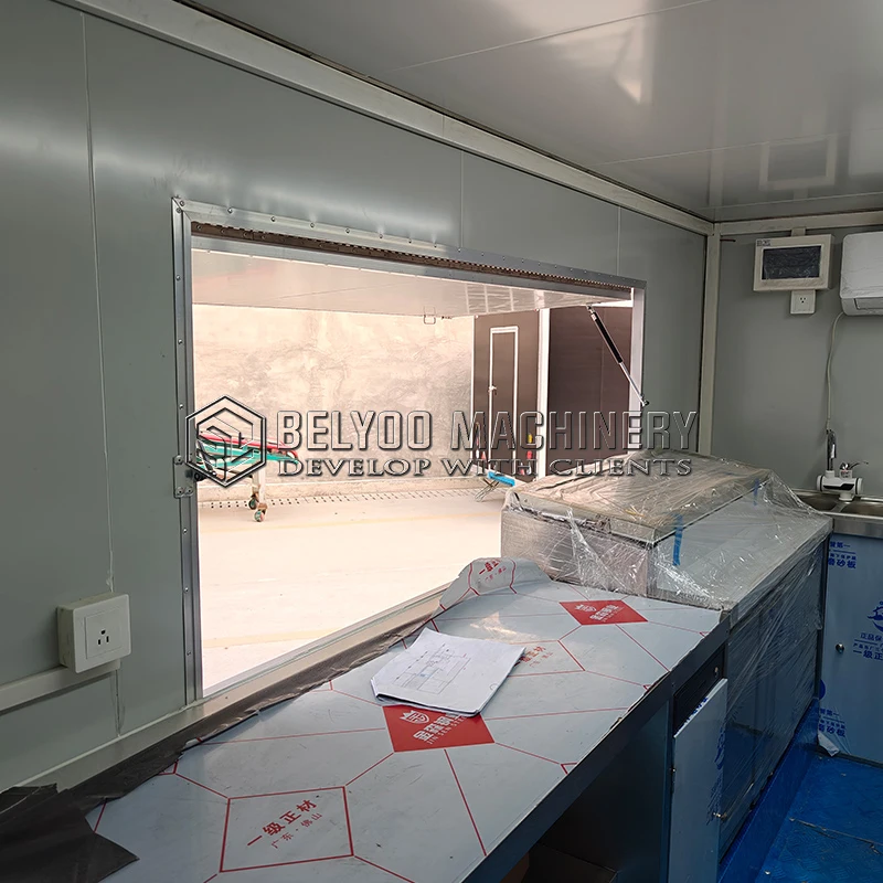 For the inside equipment,If you need any cooking utensil or customization.please inform my manager what kind of snacks would you like to sell inside, so that the most suitable machines could be installed.