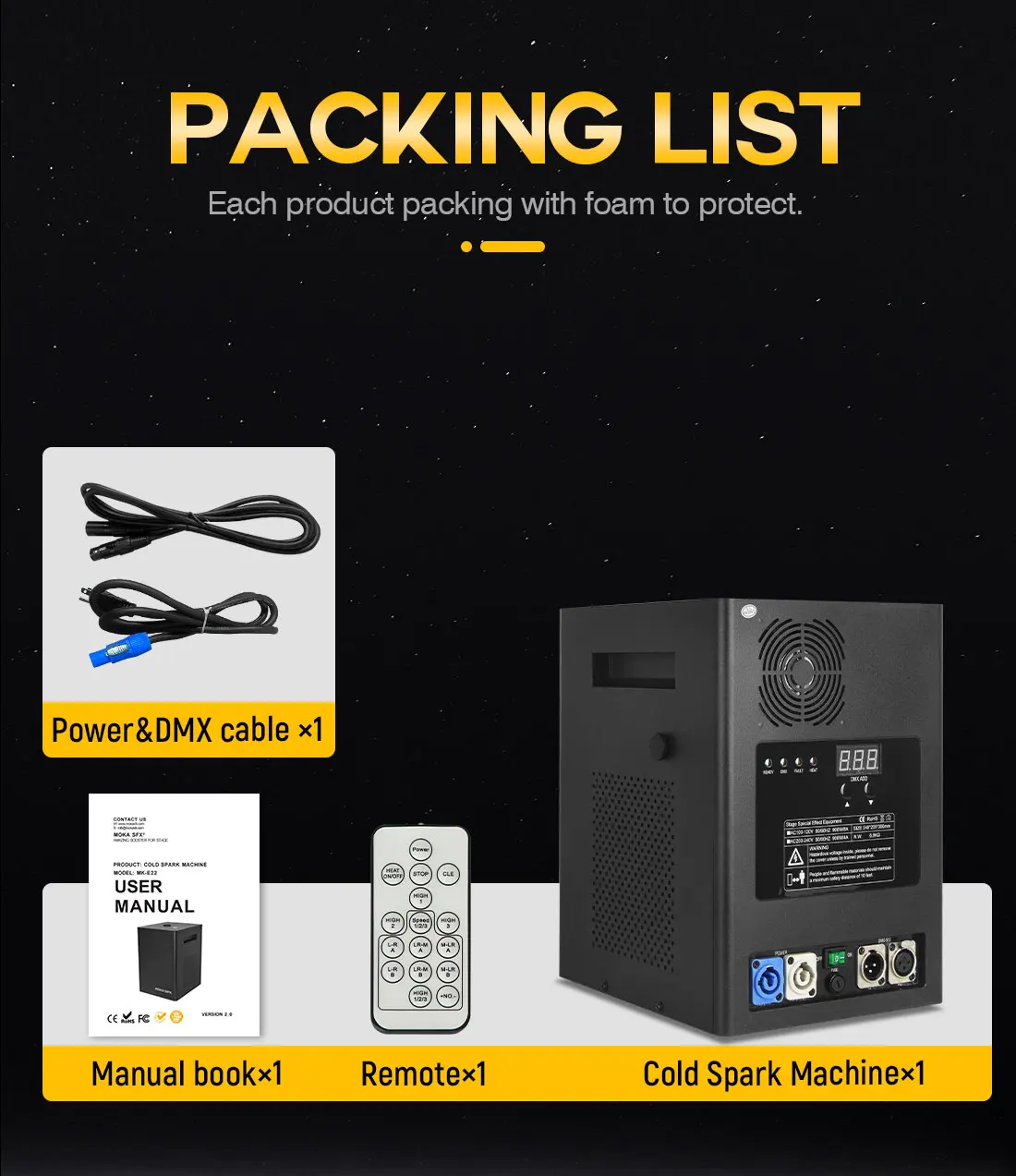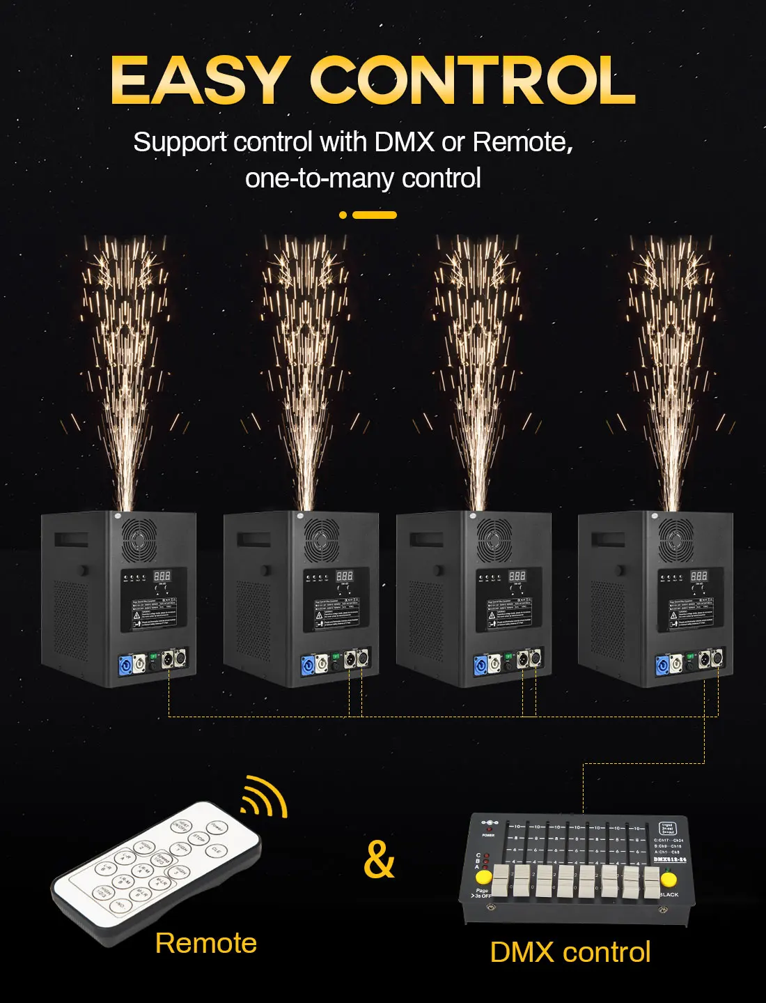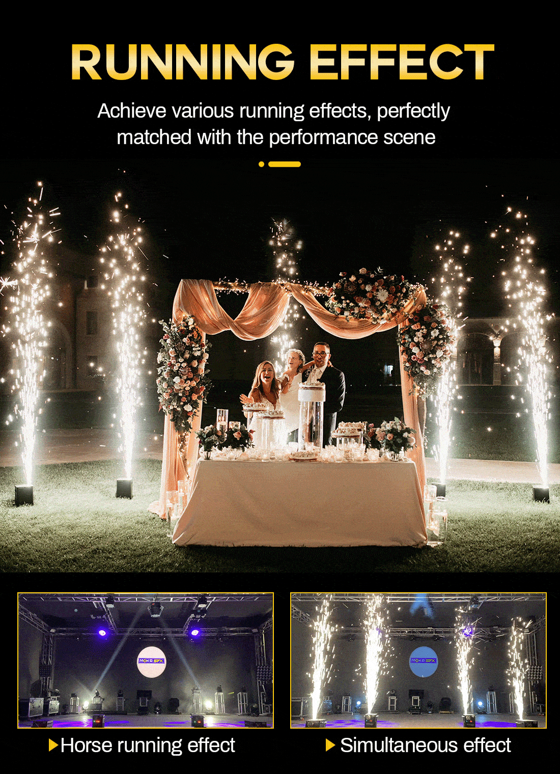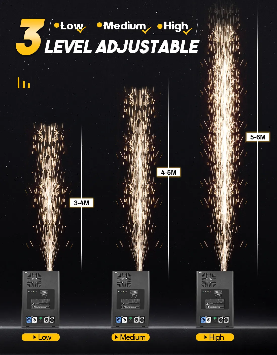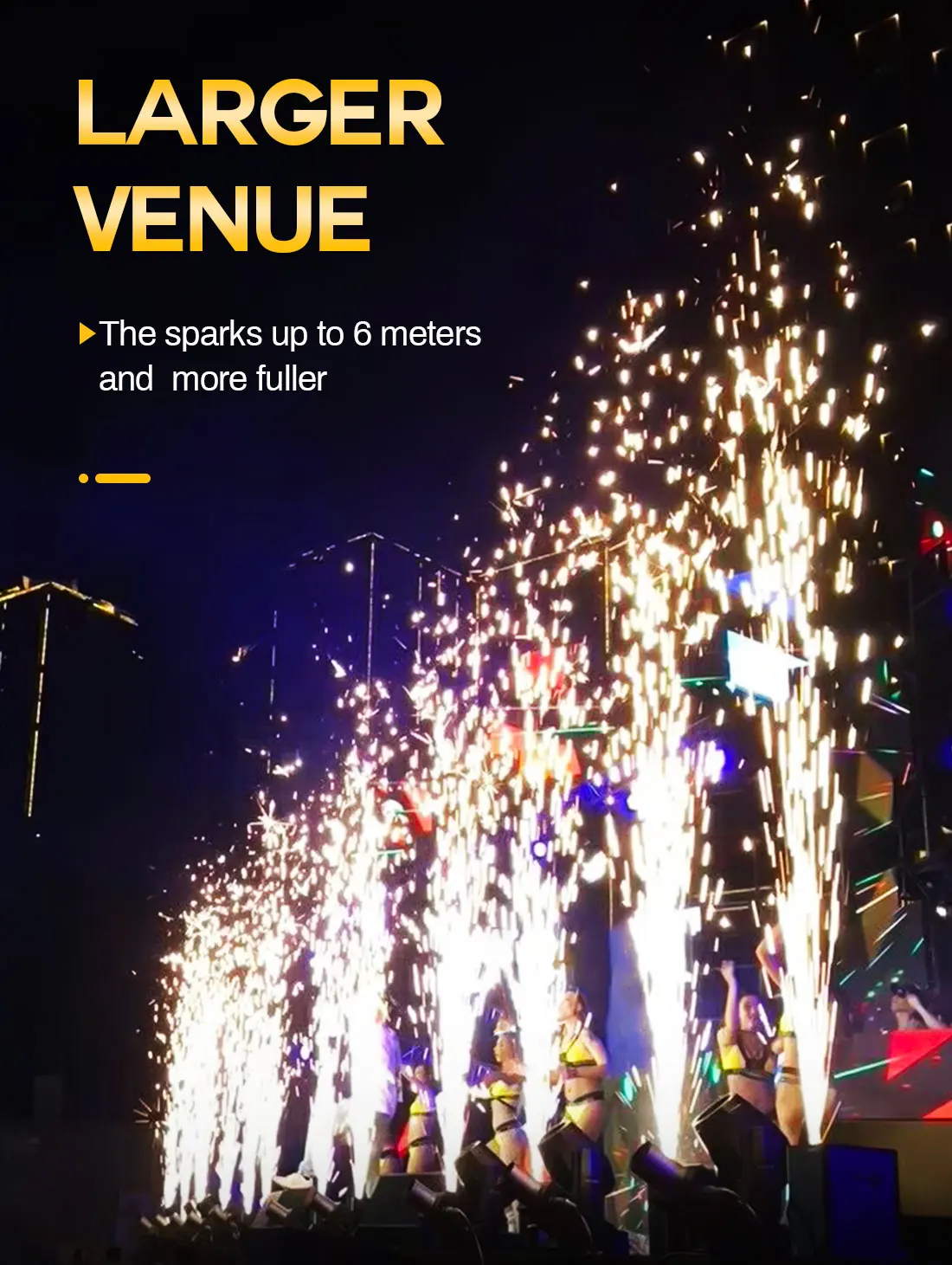 1. Spray 3-6 meters, suitable for indoor or outdoor performance, which makes a higher and fuller spark effect then other sparkler machine;
