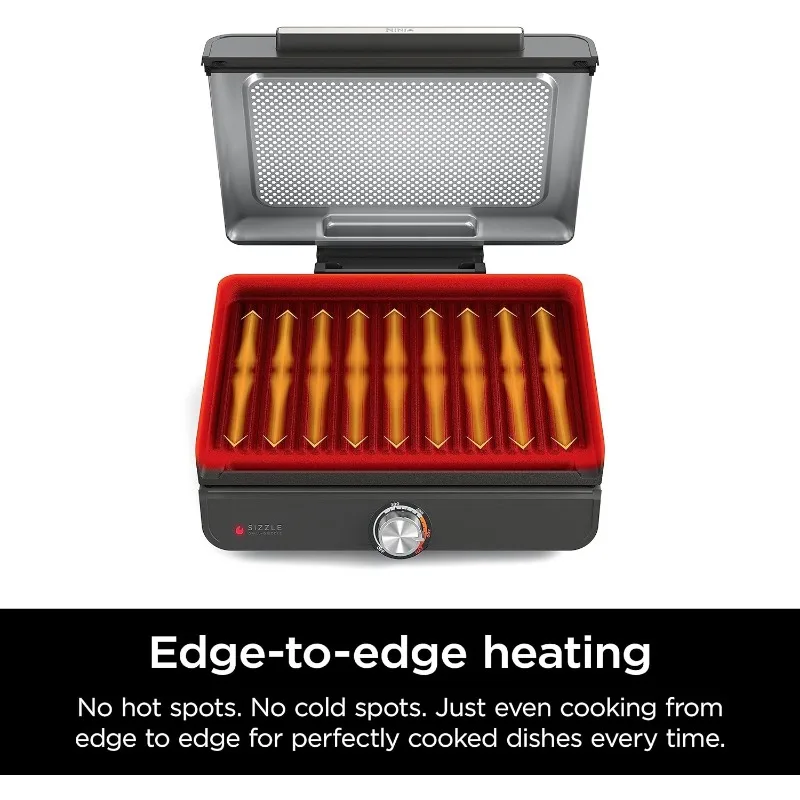 WHAT’S INCLUDED: Ninja Sizzle Smokeless Indoor Grill and Griddle, 14” Nonstick Grill Plate, 14” Nonstick Flat Top Griddle Plate, and Quick Start Guide with 10 Recipes.