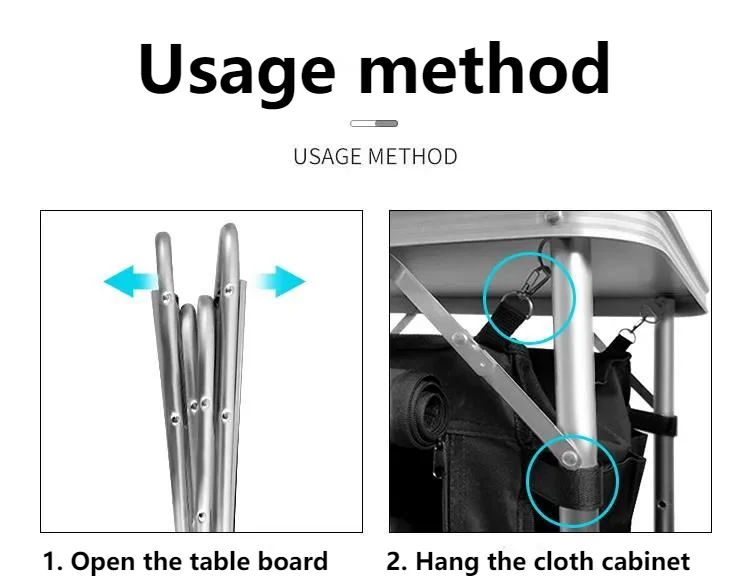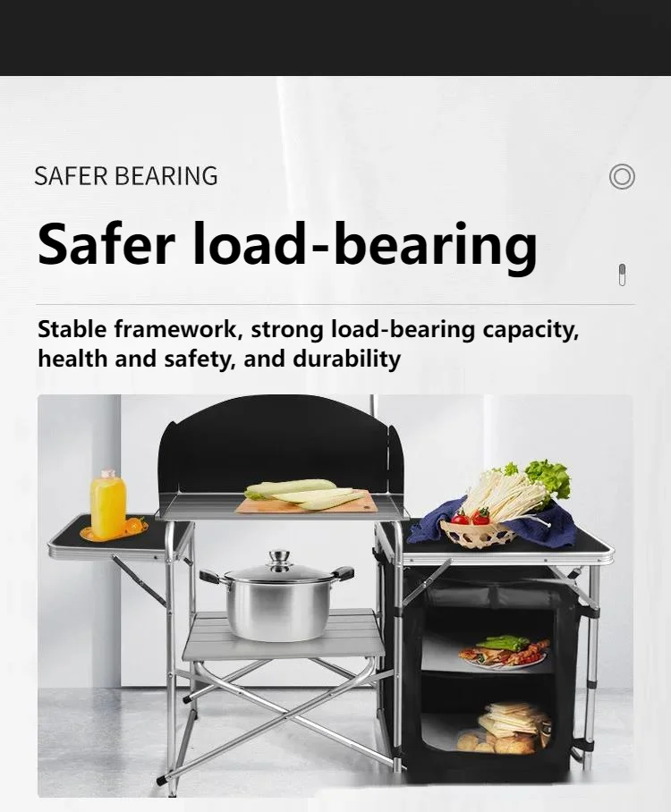 Elevate your outdoor cooking experience with our durable and portable Outdoor Camping Mobile Kitchen Aluminum Alloy Folding Table With Cloth. Made from high-quality aluminum alloy, this folding table is perfect for setting up a mobile kitchen while camping, hiking, or enjoying a picnic in the great outdoors.