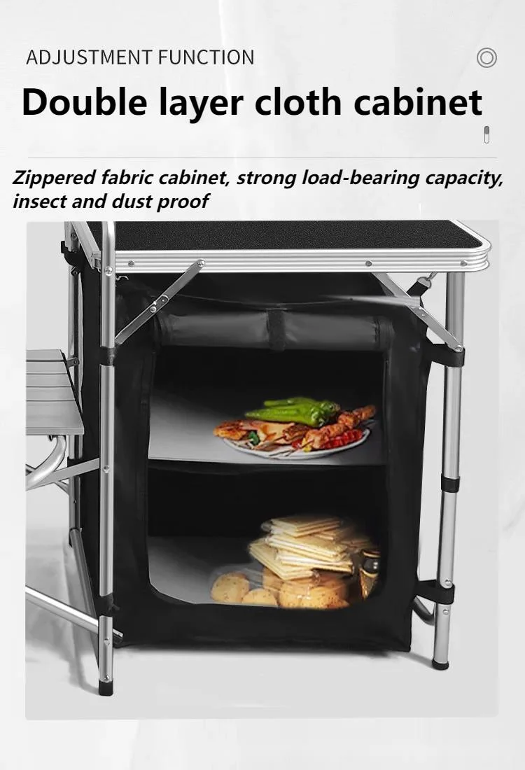 Make your outdoor adventures even more enjoyable with our Outdoor Camping Mobile Kitchen Aluminum Alloy Folding Table With Cloth. Order yours today and take your camping experience to the next level!