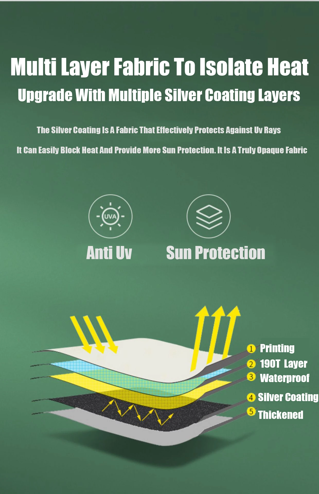 ③ Multi-layer protection, upgraded with multiple silver-coated layers, which can easily block heat and provide more sun protection. It is a truly opaque fabric.