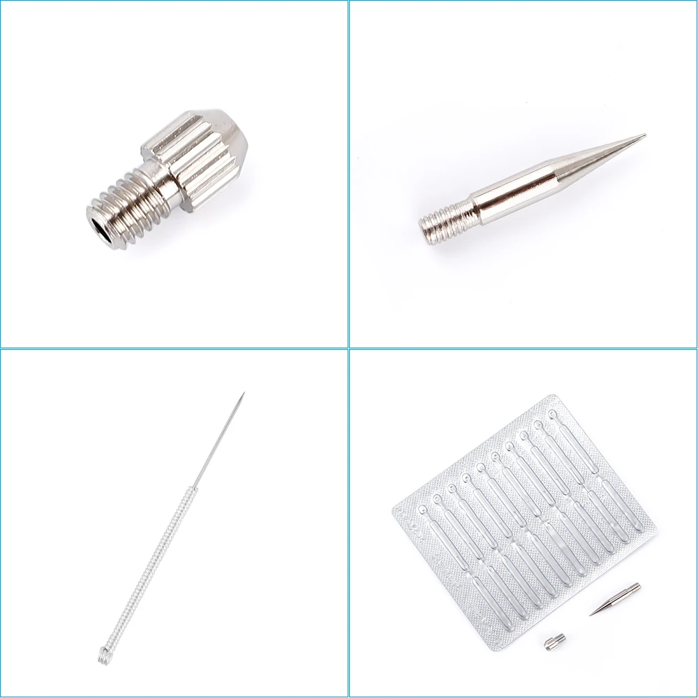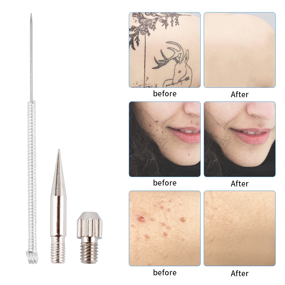 The Plasma Pen Needles Kit is designed for use with a wart, tag, or tattoo remover pen. These needles are specifically designed for use with laser skin mole and freckle removal machines. The kit contains all the necessary accessories needed for effective and safe removal of unwanted skin imperfections. With the use of this kit, users can easily and efficiently remove various skin tags, warts, tattoos, moles, and freckles in the comfort of their own home or professional setting. This kit provides a convenient solution for those looking to improve the appearance of their skin.