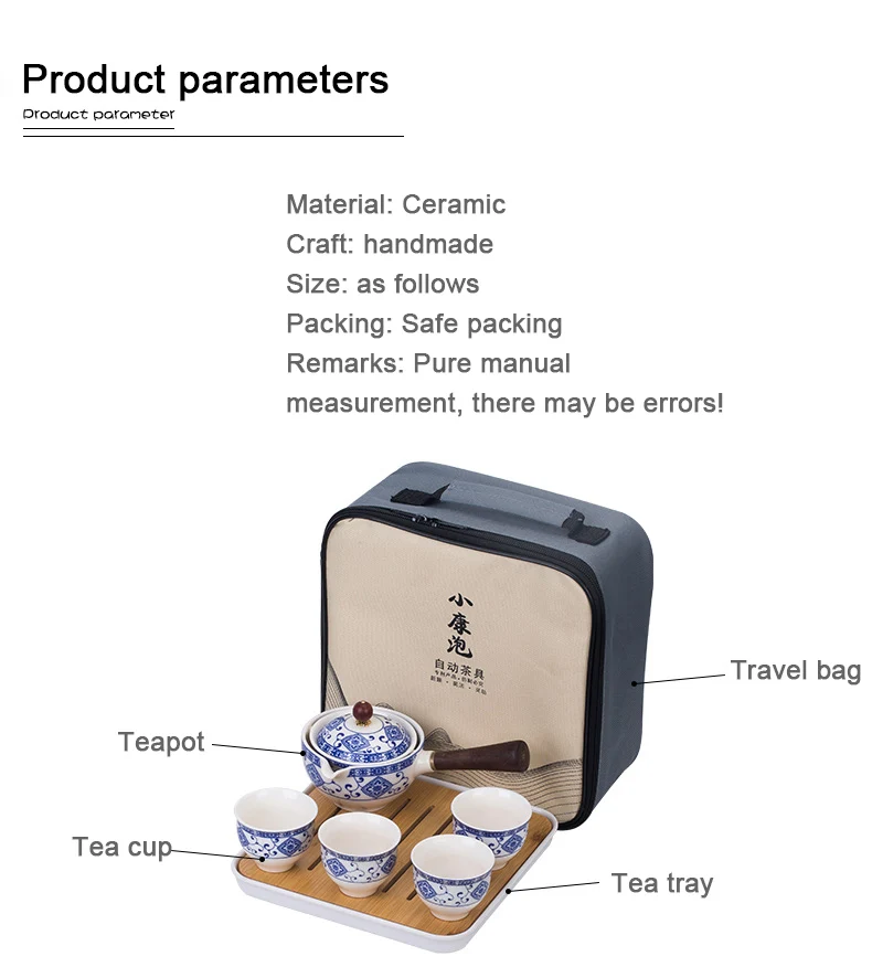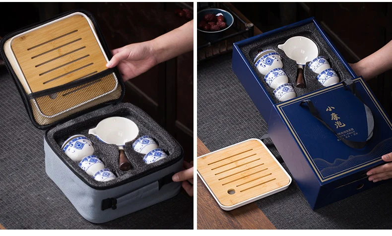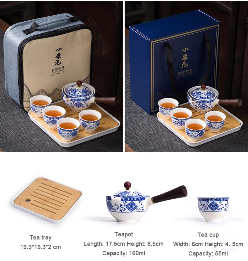 Made from high-quality porcelain, this set includes a portable teapot with a 360-degree rotation feature, allowing you to easily pour and serve tea without any hassle. The set also includes cups and a tea tray, making it convenient for you to enjoy a traditional Gongfu tea ceremony wherever you go.