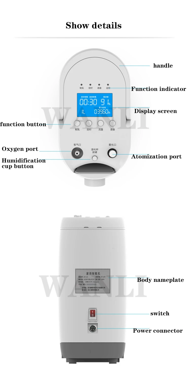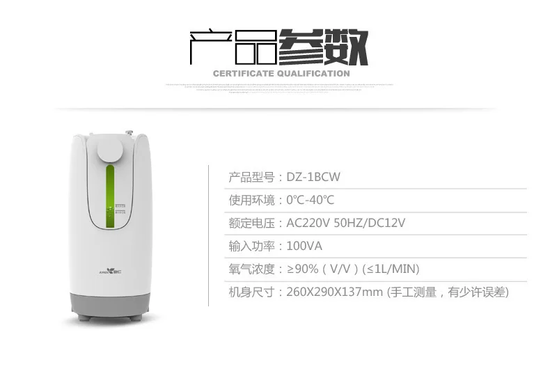 DZ-1BCW Air Purifier 93%±3% Medical High Oxygen Concentrator Oxygen Generators Portable Home Care Oxygen Generator 110V/ 220V