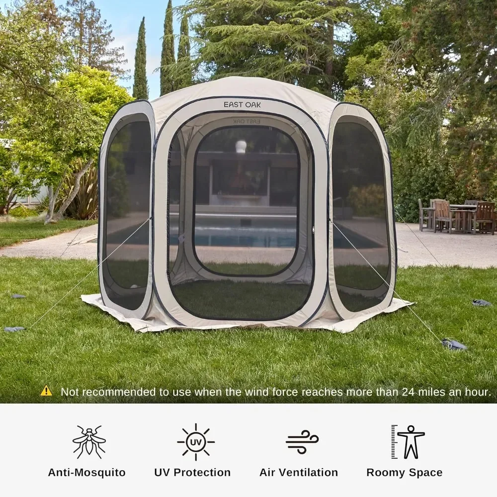 - 𝗕𝘂𝗴𝘀-𝗣𝗿𝗼𝗼𝗳 & 𝗩𝗲𝗻𝘁𝗶𝗹𝗮𝘁𝗲𝗱 𝗦𝗽𝗮𝗰𝗲 : portable pop-up screen tent features a 4-sided B3 fine mesh design for 360° perfect ventilation and can protect you from mosquitoes or other bugs. The tent body is made of high-quality Oxford fabric coated with silver to achieve all-day UPF 50+ UV resistance. Ideal for creating a comfortable and protected resting space during various outdoor activities (picnics, camping).