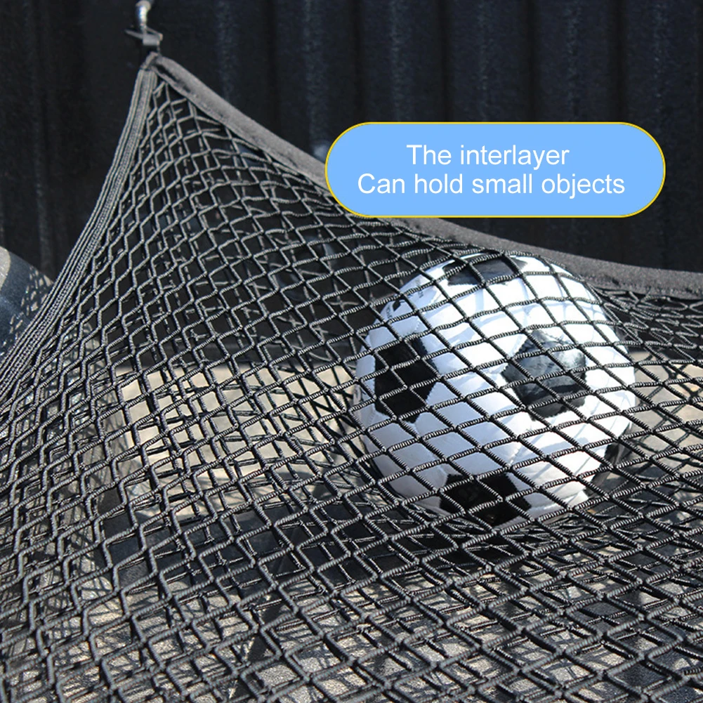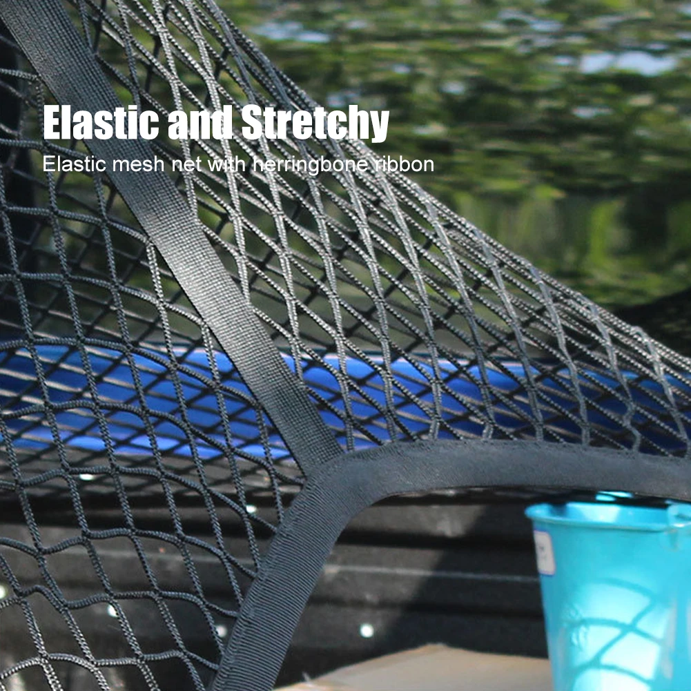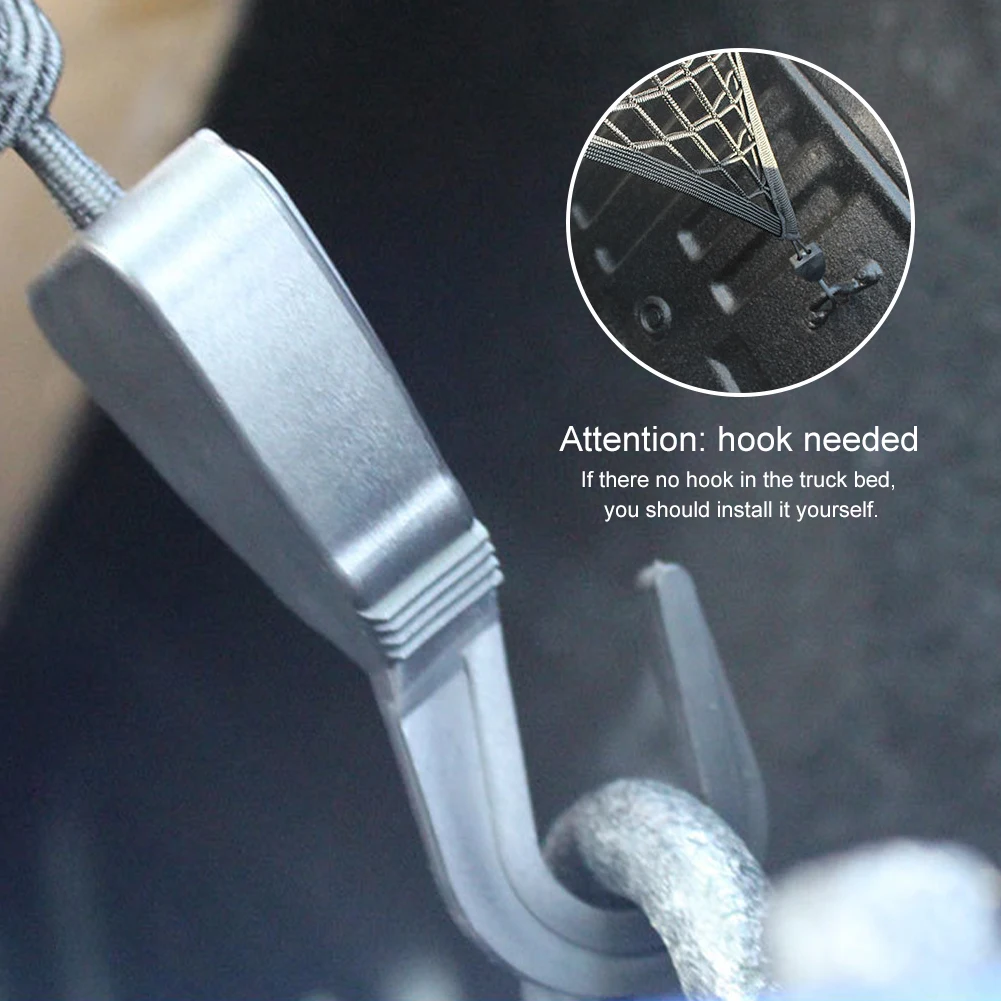 This reflective cargo net is designed for truck pickup beds and offers a latex elastic cargo storage solution. It helps organize luggage and other items securely with its bungee mesh design. The net is universal and suitable for travel and offroad use. It provides a safe and convenient way to store items in the back of a truck, preventing them from shifting or falling out during transport. This cargo net is durable, flexible, and easy to install, making it a practical accessory for truck owners looking to improve their storage and organization options.