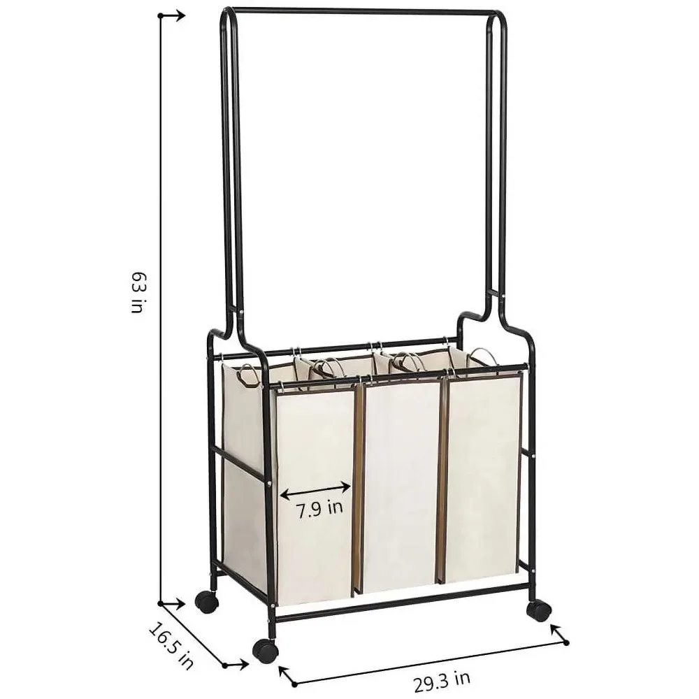 - STURDY METAL FRAME: This Heavy-duty Laundry sorter cart come with durable and sturdy black steel tube is rust-resistant and stable enough, the hanging bar is strong enough for holding heavy clothes like jackets and coats, with this upgraded quality metal of this laundry sorter cart improving the stability of the overall frame.