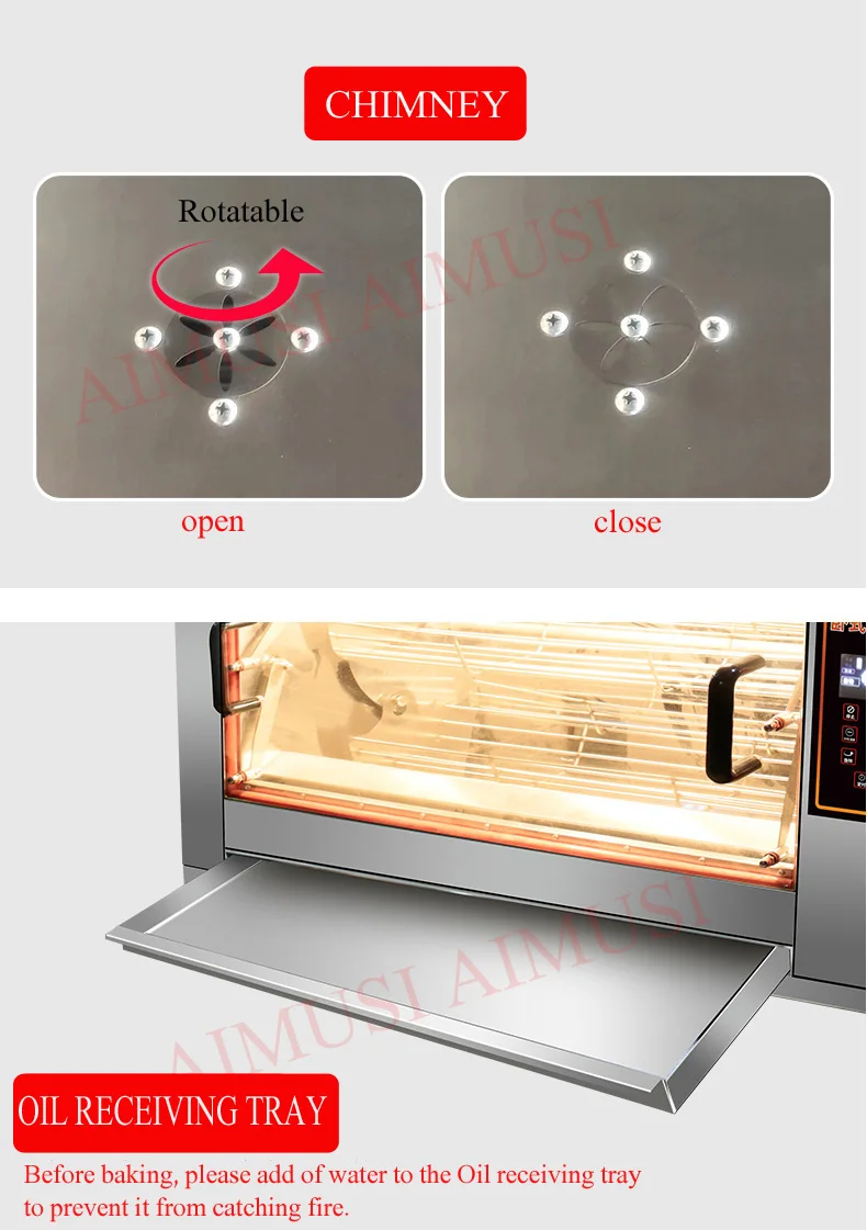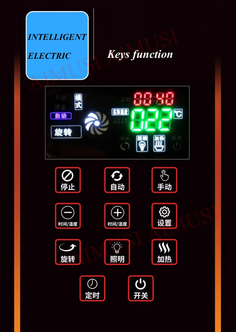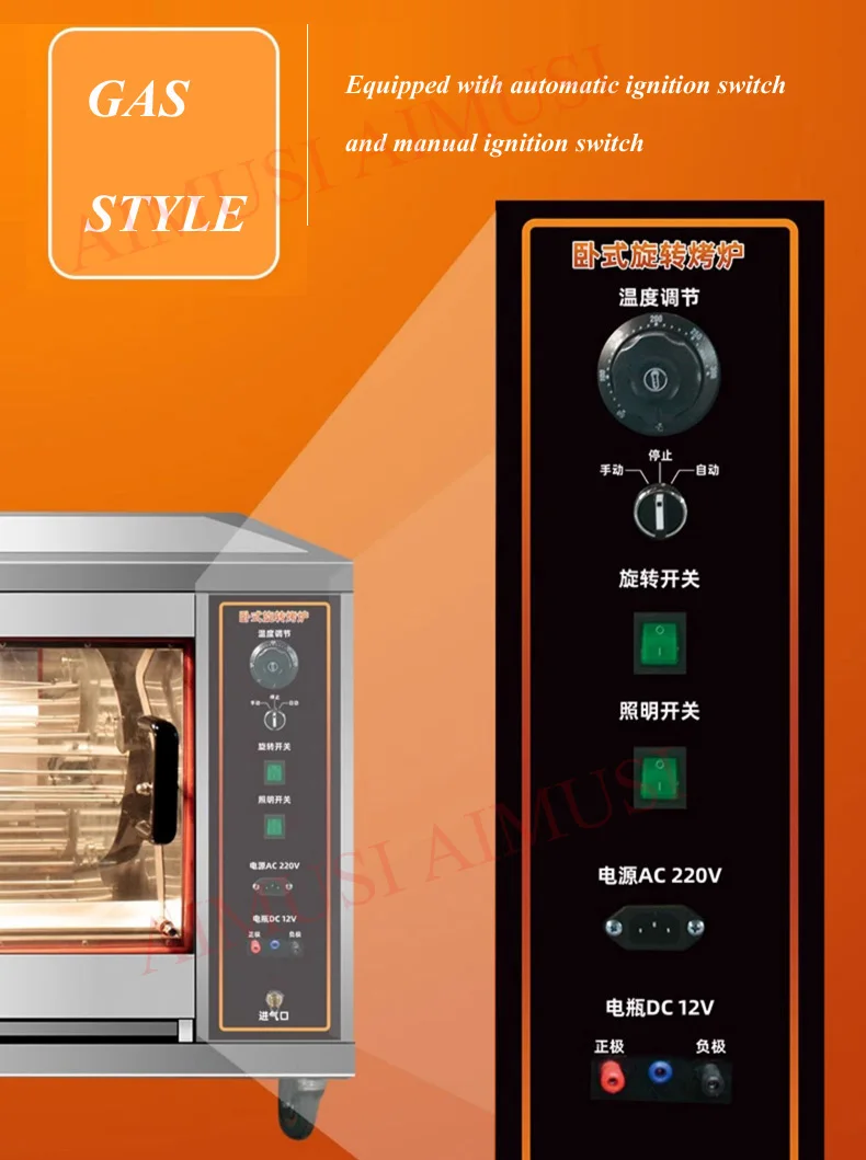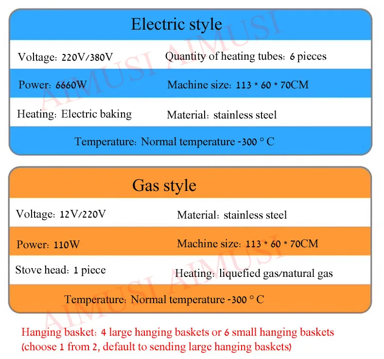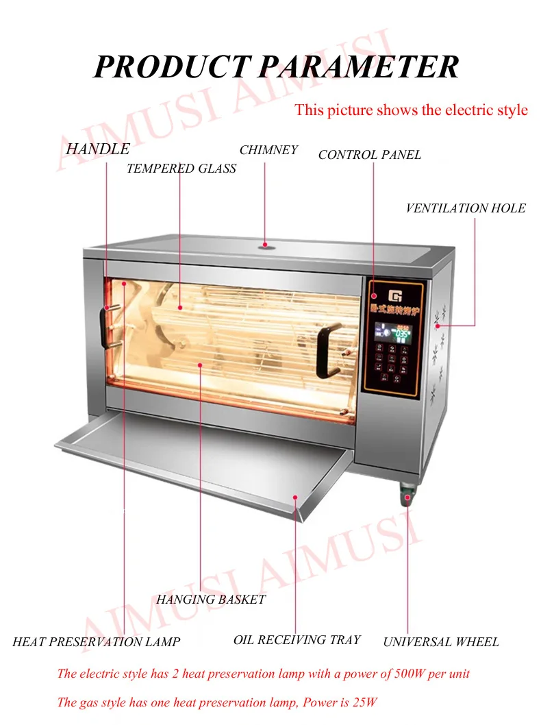 The electric style has 2 heat preservation lamp with a power of 500W per unit The gas style has one heat preservation lamp, Power is 25W