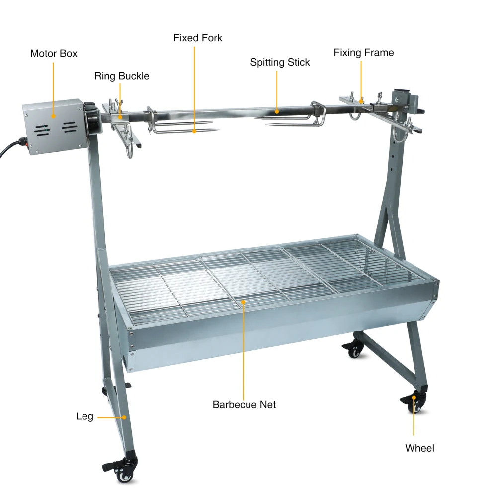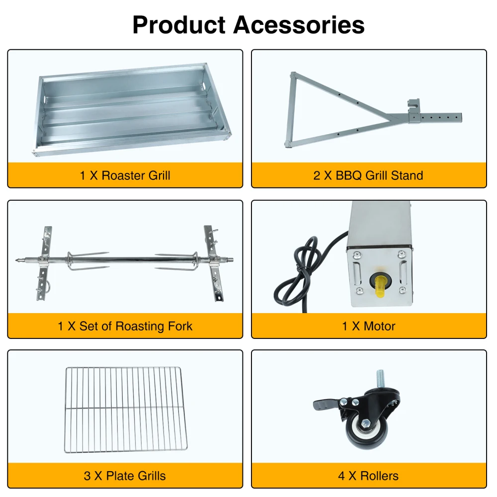 Whether you’re hosting a backyard BBQ or a special event, this grill is sure to be the star of the show. Make your next outdoor cooking adventure a memorable one with our Rotisserie Grill Roaster.”