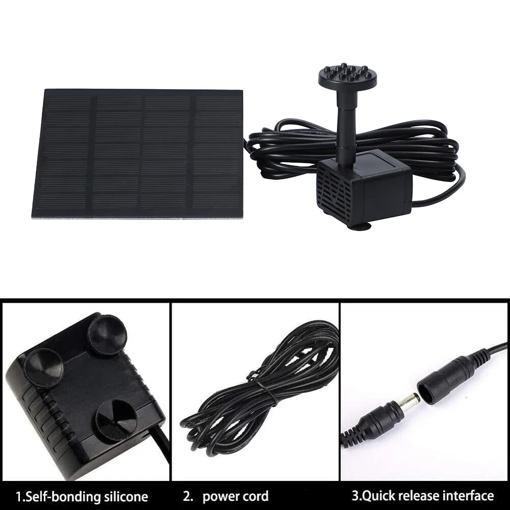 This product is a solar-powered water pump fountain that can be used in various settings such as bird baths, pools, gardens, and aquariums. It comes with 6 different nozzles to create different water patterns and can also be used as a decorative prop. The pump is submersible and can be easily installed to create a beautiful water feature in any outdoor space. It is environmentally friendly and efficient, making it a great addition to any home or outdoor area.